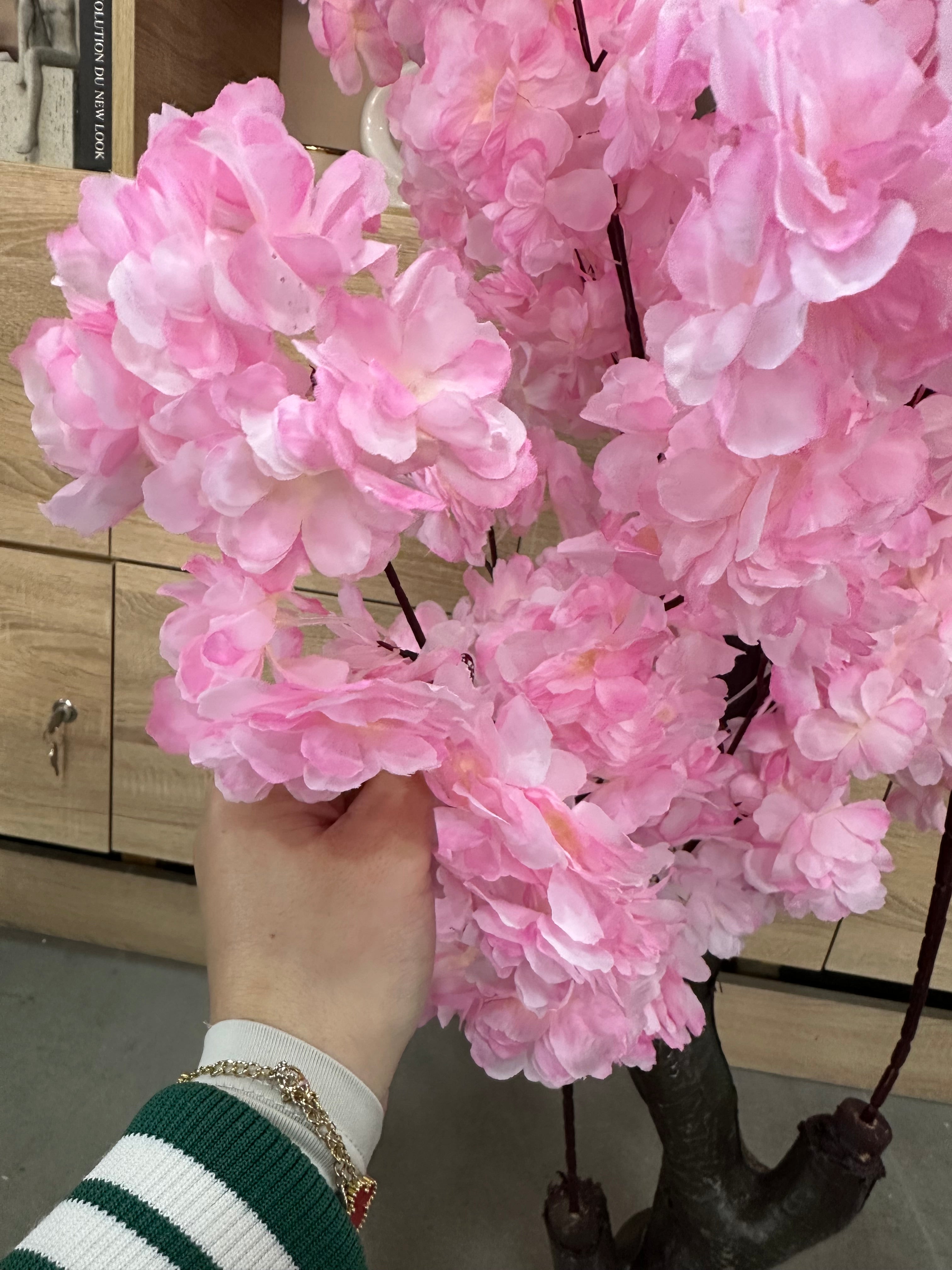 Pemë artificiale dekorative me lule qershie dhe trungu kafe
