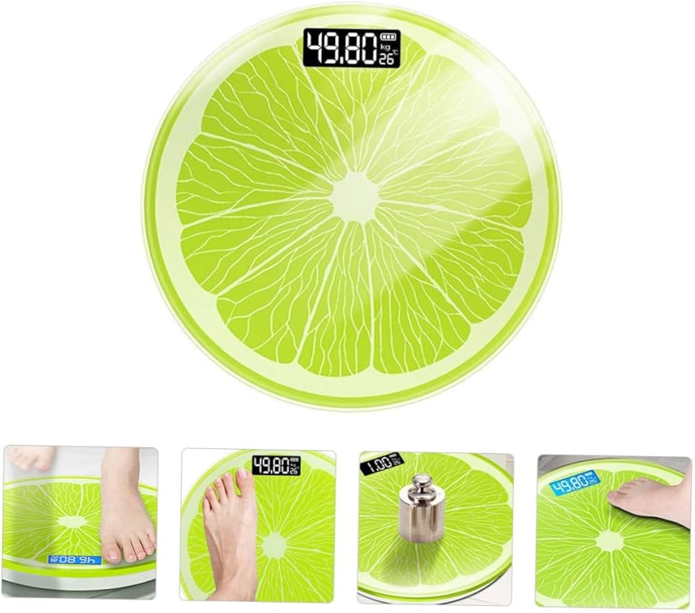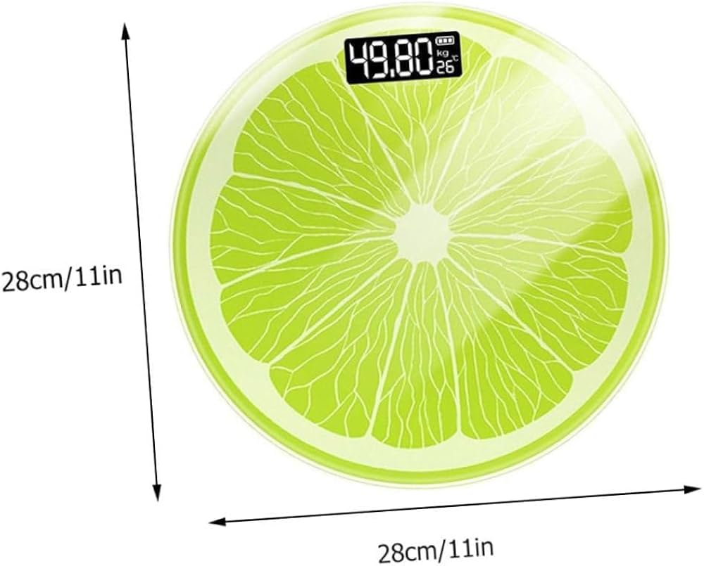 Peshore në formë limoni; max 180 kg; Materiali: qelq; ekrani tregon temperaturën;Peshë: 930 g; Përmasat si në foto: