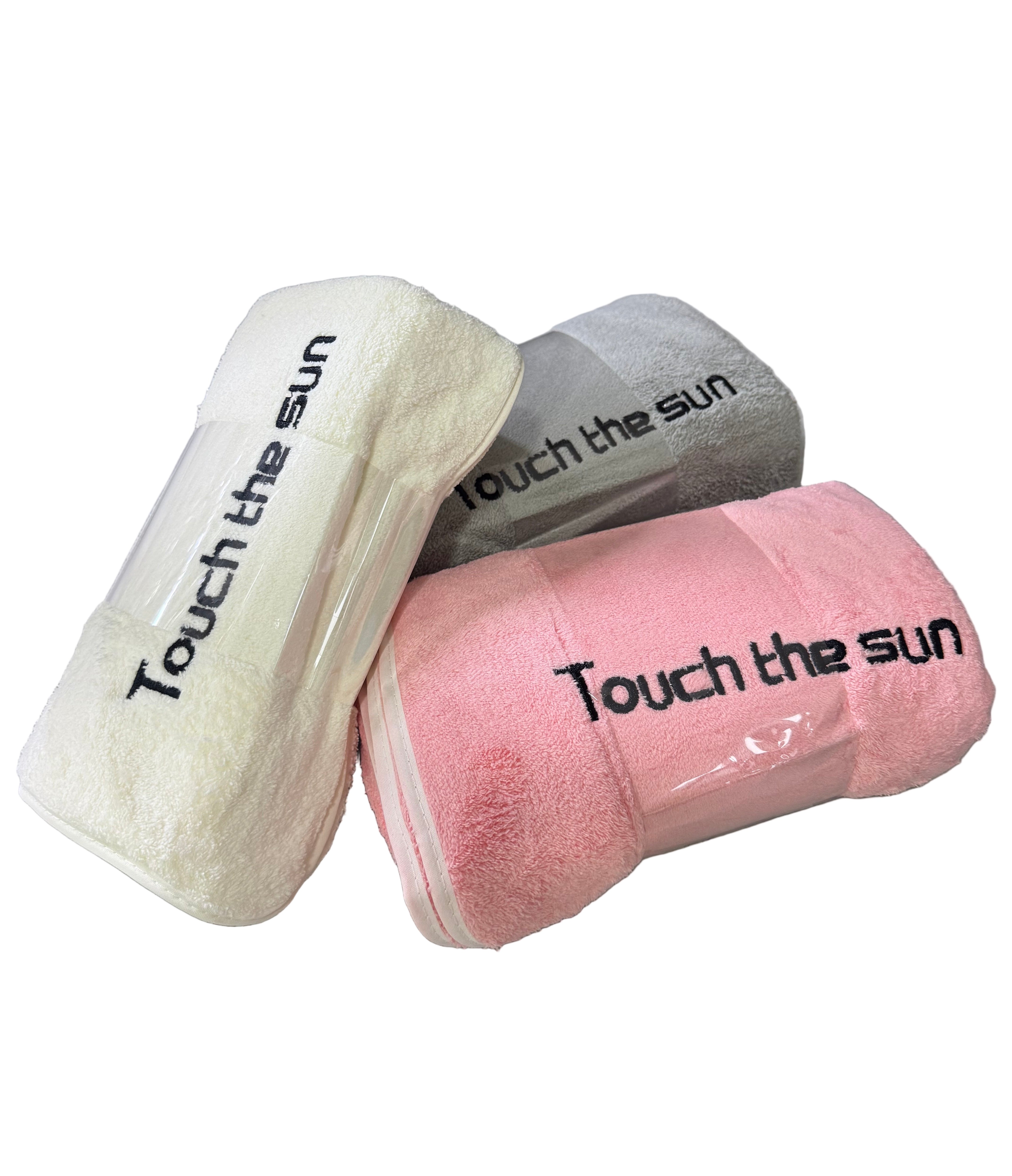 Peshqirë “Touch the Sun” super të butë dhe thithës, idealë për përdorim të përditshëm në banjo ose palestër.  Ngjyrat: Qumësht, e gri, e rozë. Materiali: Cilësorë, i butë ndaj lëkurës....