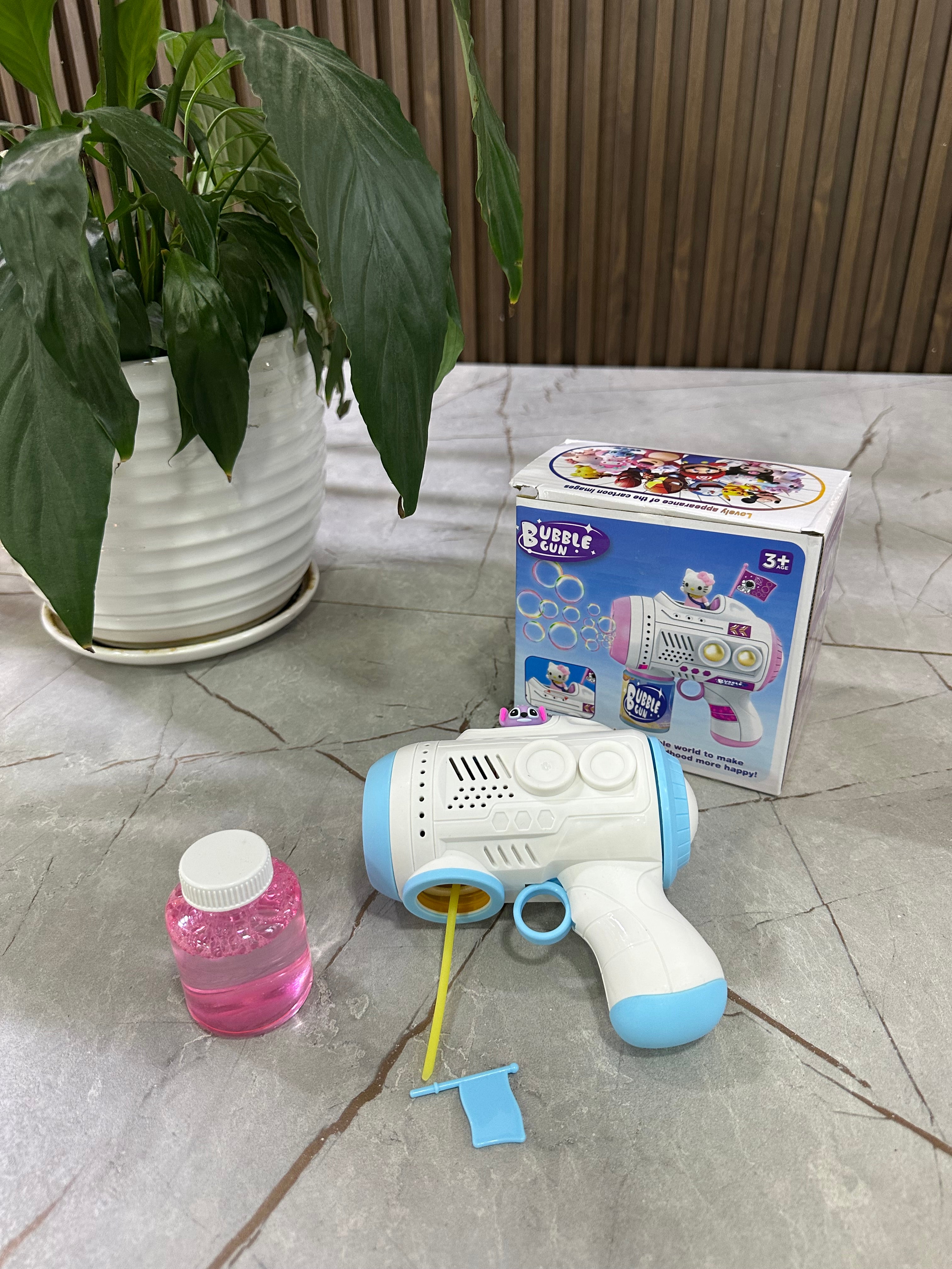Pistoletë flluskash për fëmijë, me lëng dhe drita