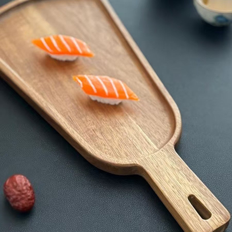 Pjatancë druri për antipasta në formë trapezi me dorezë