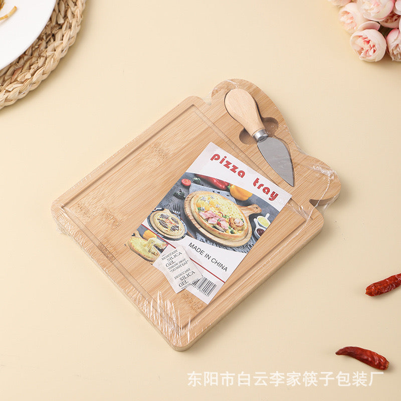 Pjatë druri për antipasta me 1 thikë katrore me mbajtëse thike 19.5 cm x 24.5 cm x 1.5 cm
