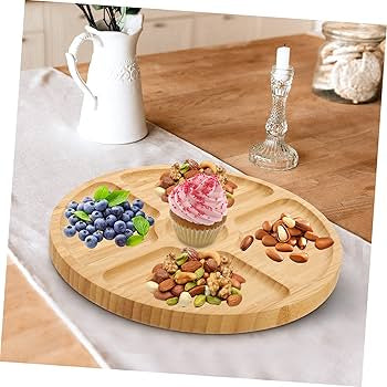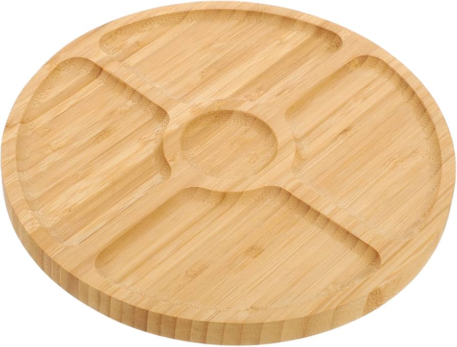Pjatë druri servirjeje rrethore me 4 ndarje