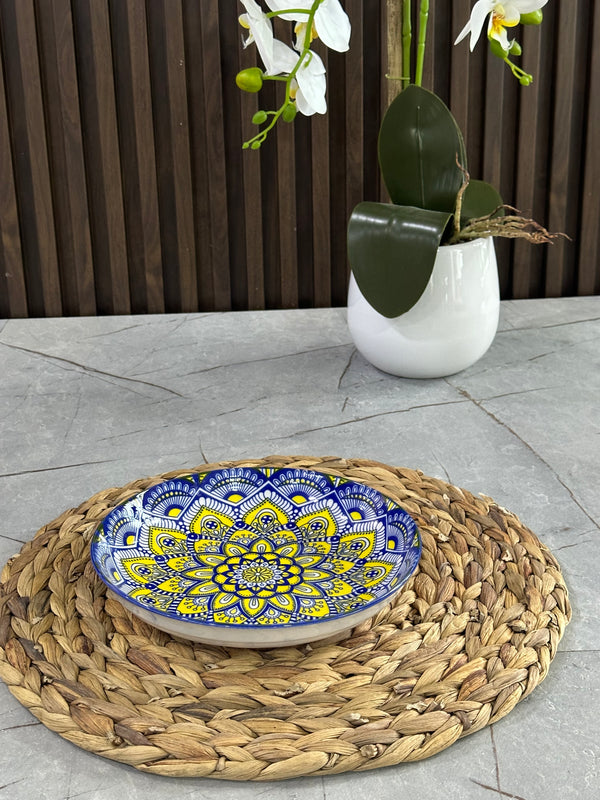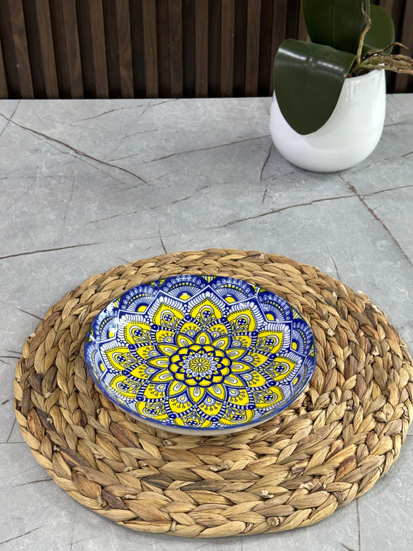 Materiali: porcelani Ngjyra: blu + e verdhë Diametri: 21cm
