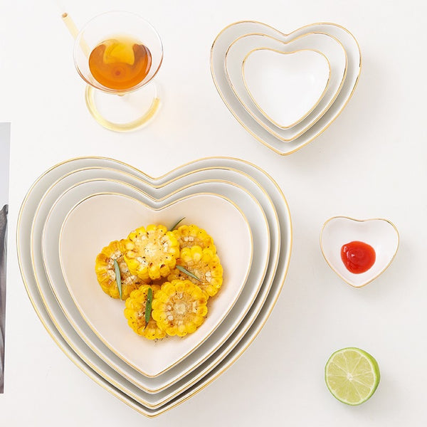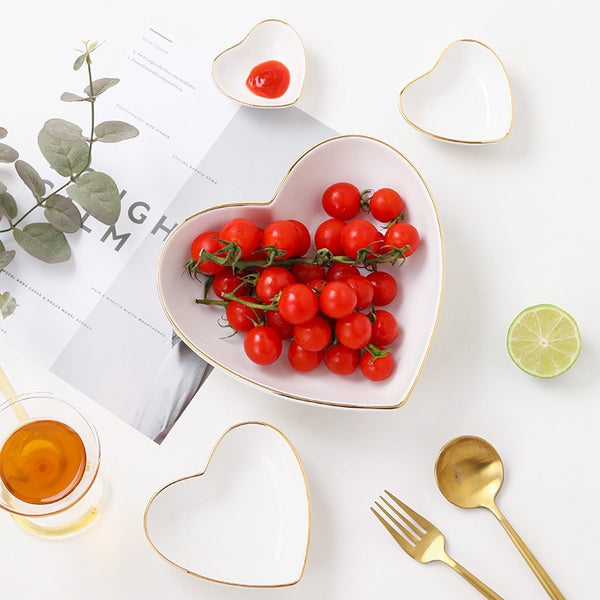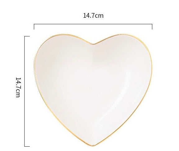 Pjatë porcelani në formë zemre me kontur gold; me shkëlqim; Përmasat si në foto: