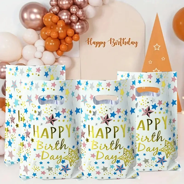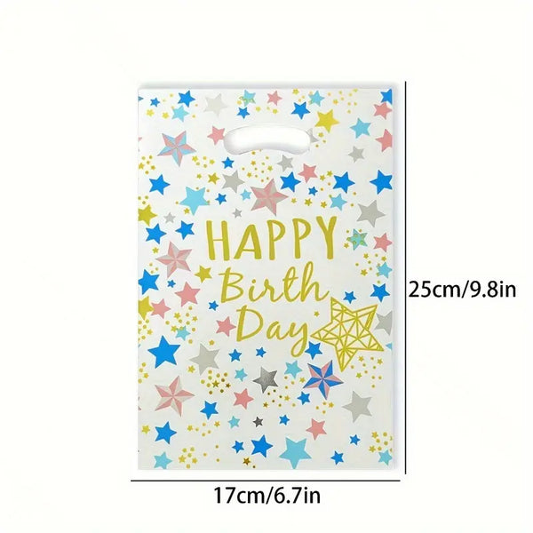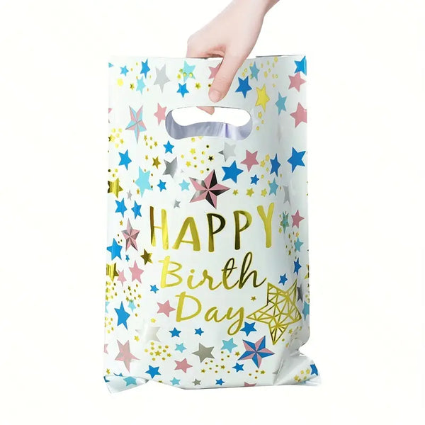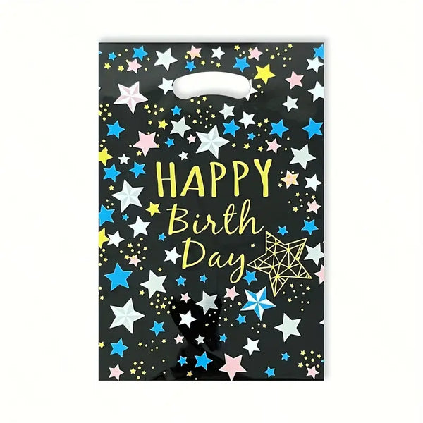 Qese për ditëlindje në ngjyrën e bardhë, e zezë, rozë me shrim “Happy birthday” dhe yje