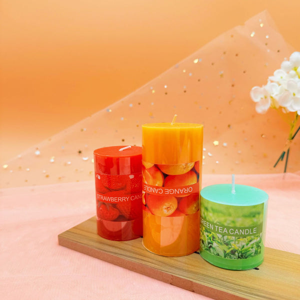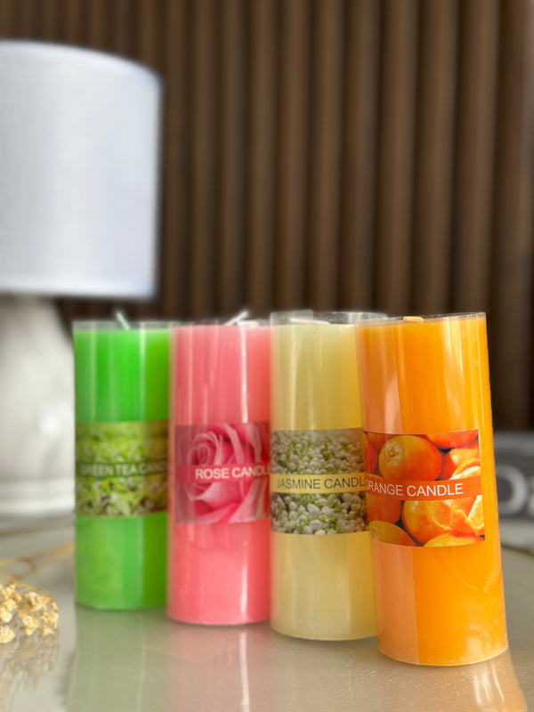 Specifikim Materiali: parafinë Ngjyra: çaj jeshile, portokall, jaseminë, rose Dimensionet: 4.8*H5cm (-35) / 4.8*H7.5cm (-36) / 4.8*H10cm (-37) / 4.8*H12cm (-38)