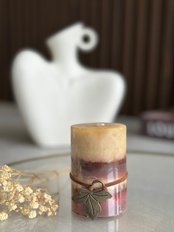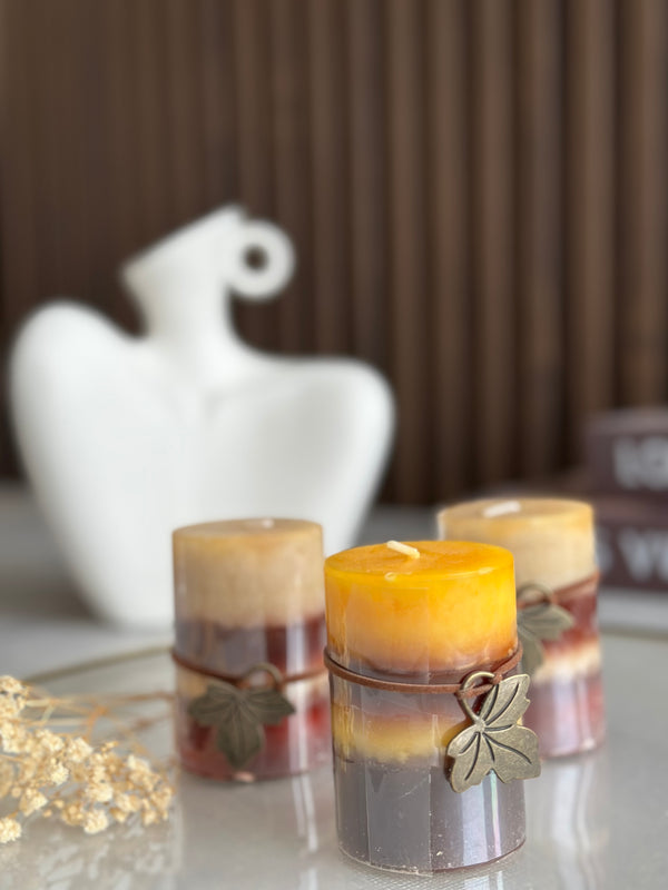 Specifikim Materiali: parafinë Ngjyra: kafe/ portokalli Dimensionet: 4.8*H7.3cm