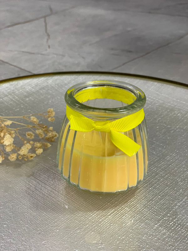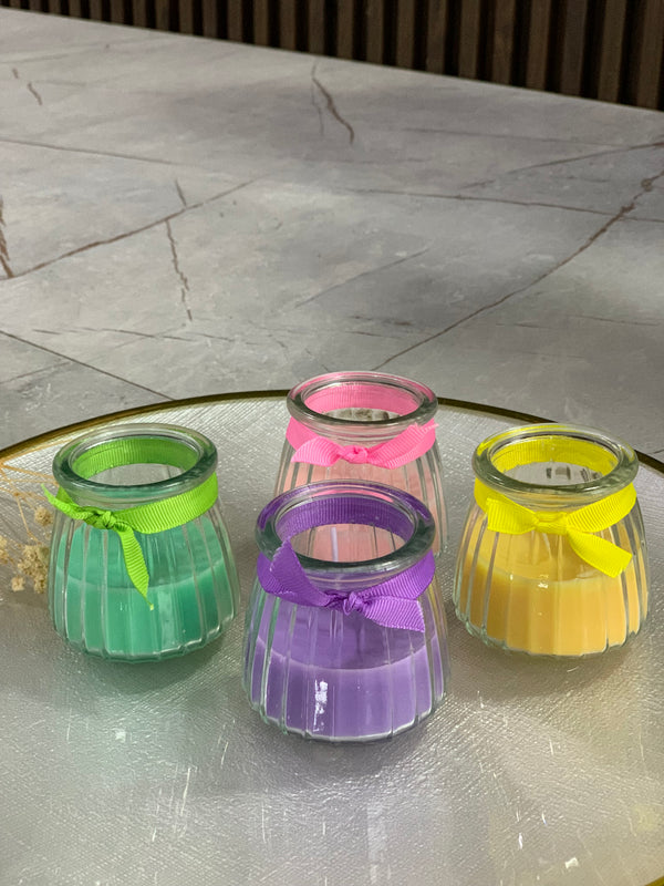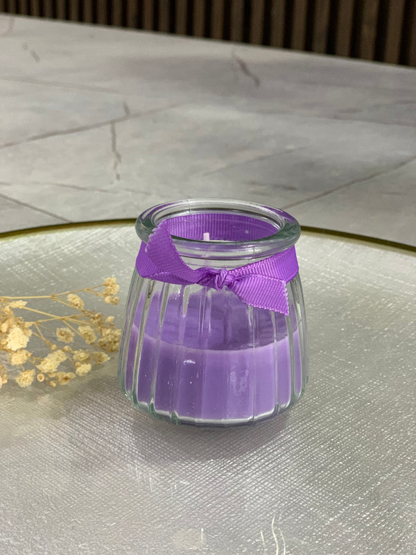 Specifikim Materiali: parafinë/qelq  Aroma: lavender, mollë, vanilje, trëndafil Dimensionet: 5.2*H6.5cm