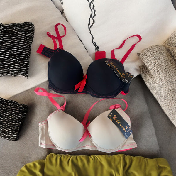 Reçipeta me kupa e efekt push up; detaje dantelle; me fjongo; Material i rehatshëm; Ngjyrat: Bezhë, e bardhë, e zezë