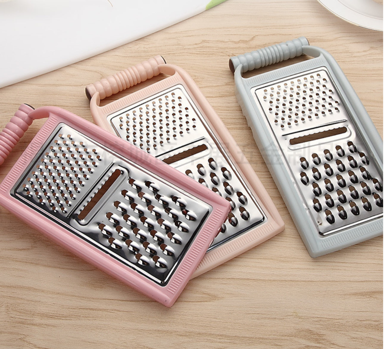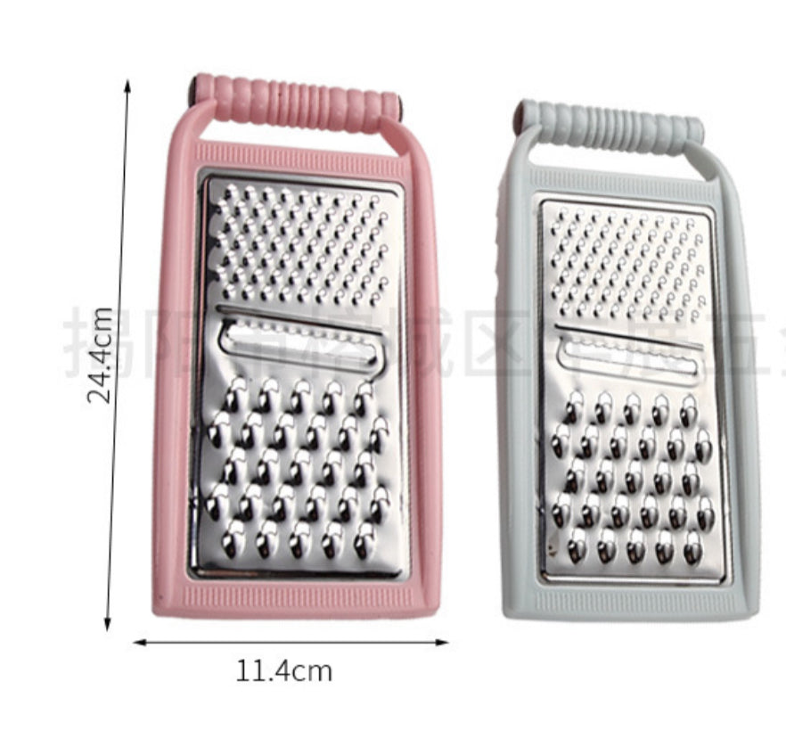 Rende inoksi për perime ose djathë; me veshje plastike; Ngjyrat: Rozë, jeshile, portokalli, lejla; Përmasat si në foto: