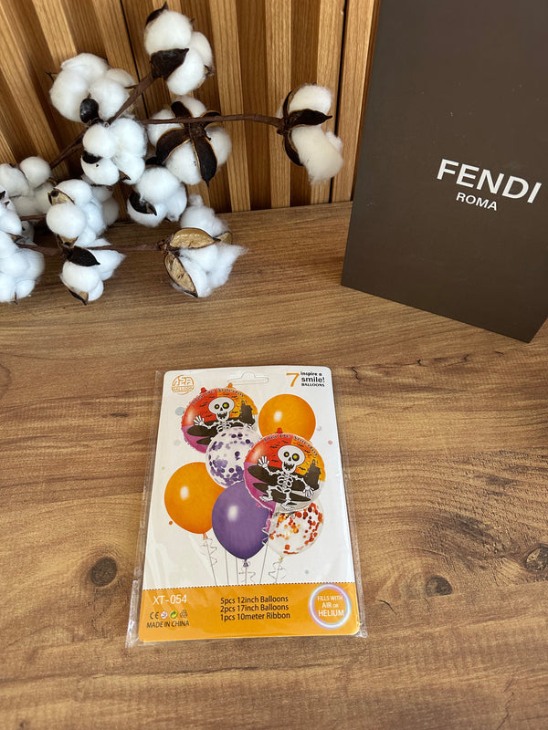 Set Balona Halloween - Dizajn me Skelet & ngjyra festive(7 copë).