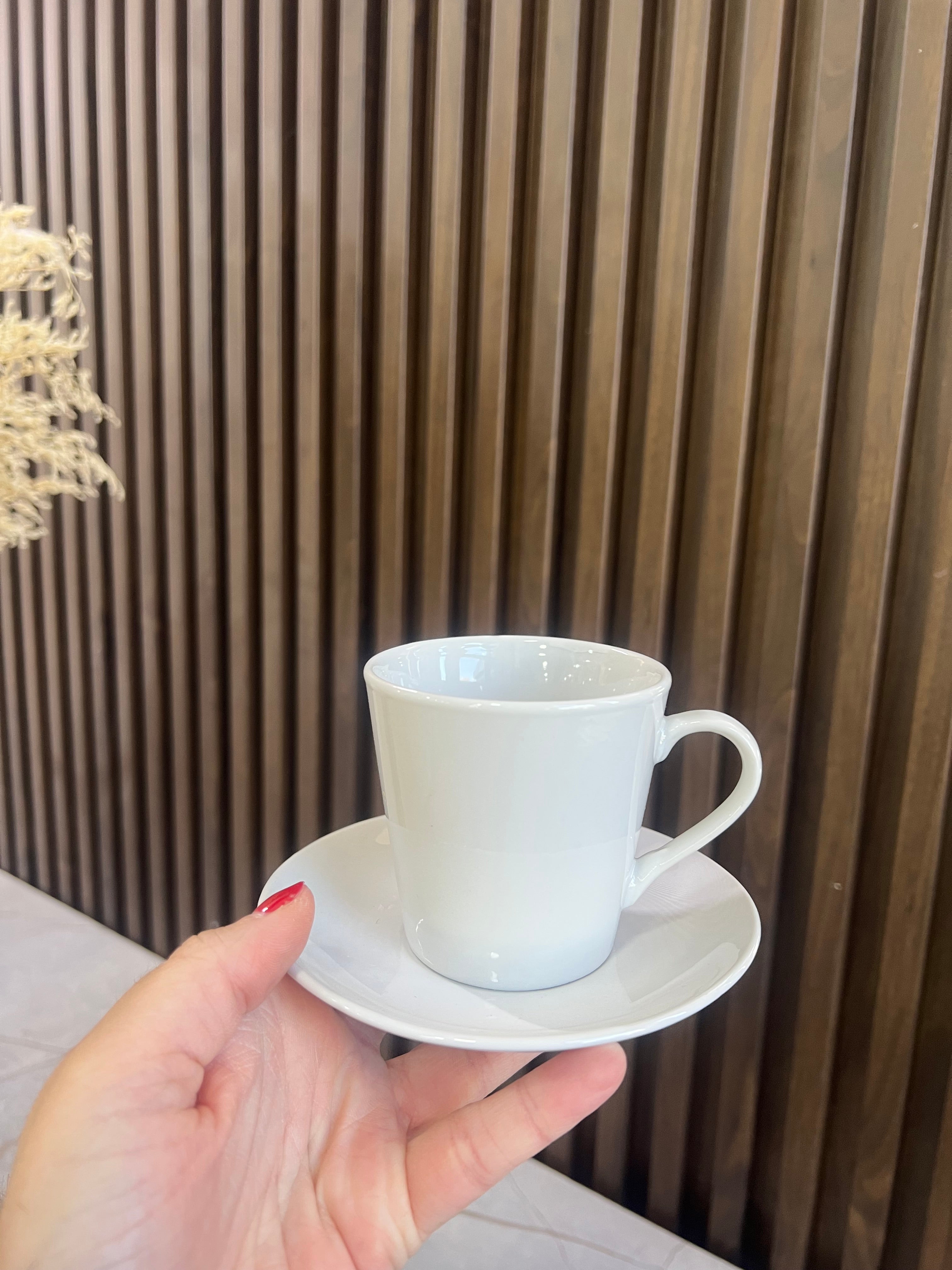 Set filxhanësh kafeje me pjata, ngjyrë e bardhë