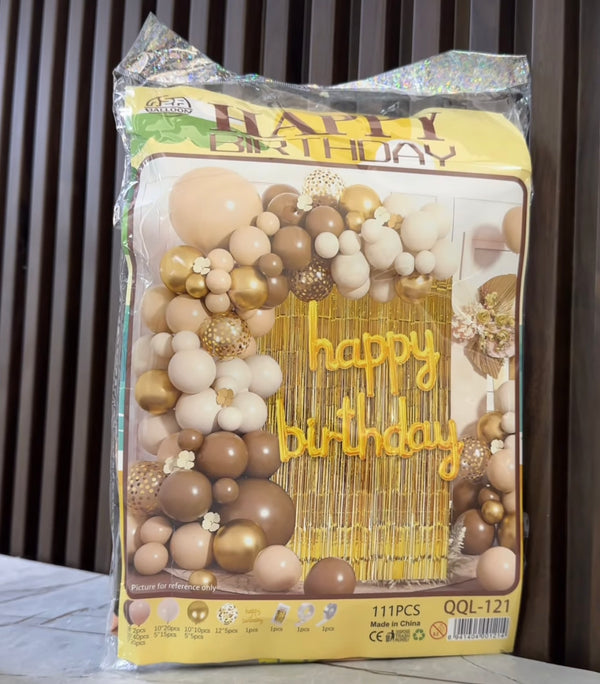 Set me 111 pjesë për dekor ditëlindjeje me tullumbace kafe. Seti përmban tullumbace kafe, bezhë, gold, të bardha e me konfeti në madhësi 5inch, 10 inch dhe 12 inch, 1...