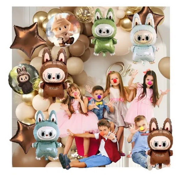 Set me 18 pjesë për dekor ditëlindjeje me Labubu që përfshin: 2 tullumbace foil në formë ylli, 2 tullumbace rrumbullake me Labubu dhe tullumbace e bardhë Labubu, 12 tullumbace me...