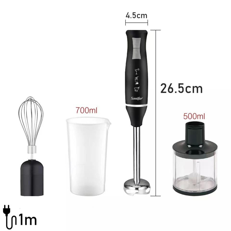 Set me Blender dore, rrahëse dhe grirëse Sonifer; gotë matëse 700ml; grirëse 500 ml; Materiali: Stainless Steal; Shërben për edhe për ushqime edhe për pije si smoothie;Ngjyra: e zezë, e bardhë;...