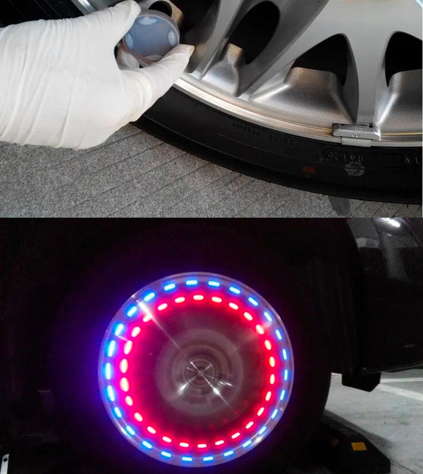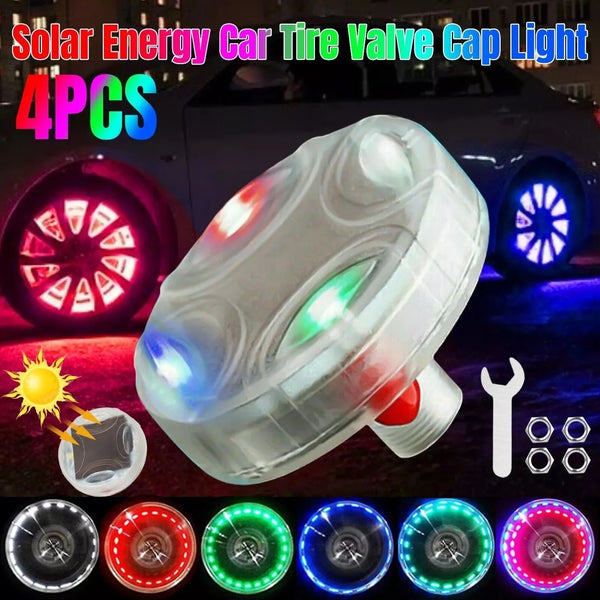 Set me 4 drita për të ndriçuar gomat e makinës; solar energy LED; RGB; 15 lloje ndriçimi; Përmasat si në foto:
