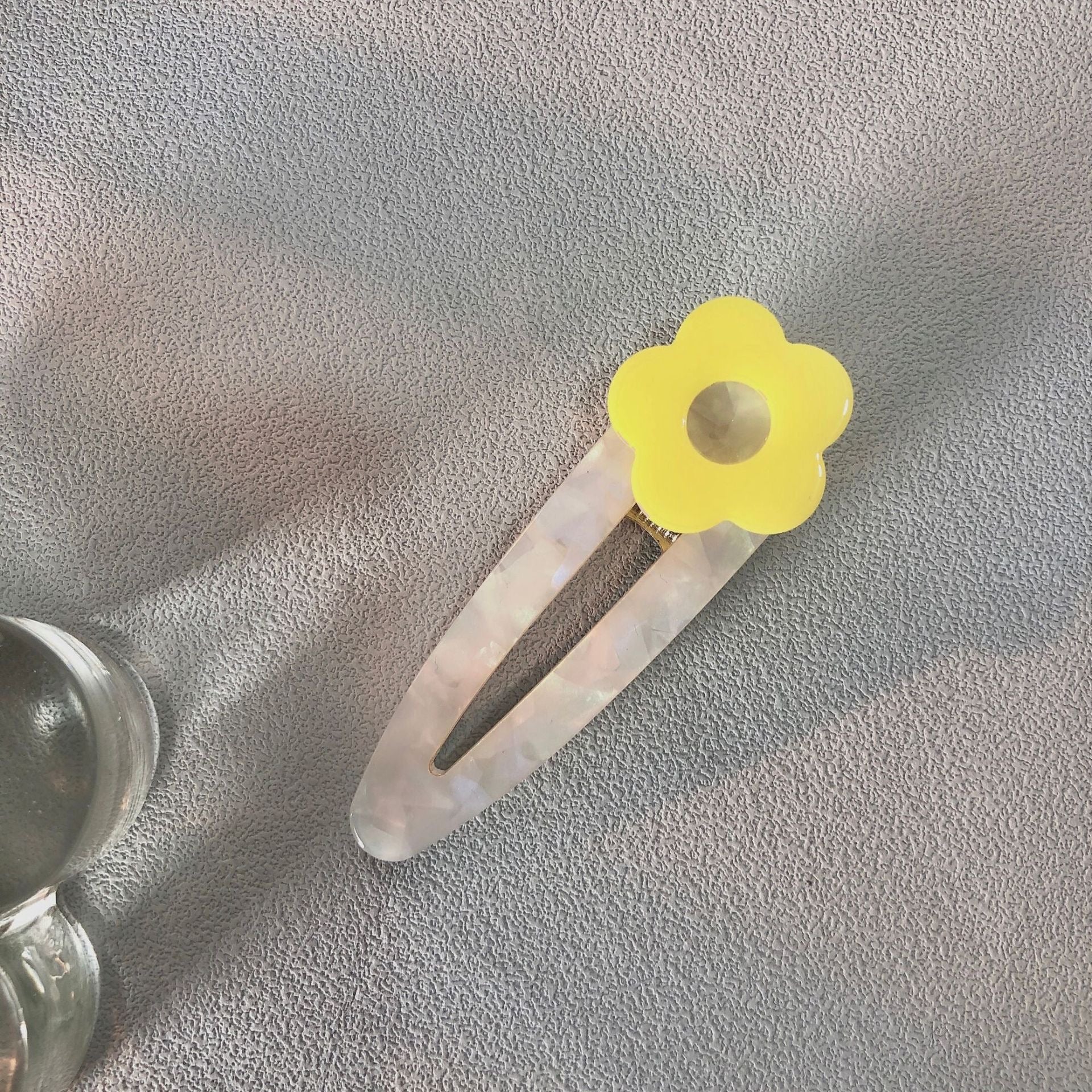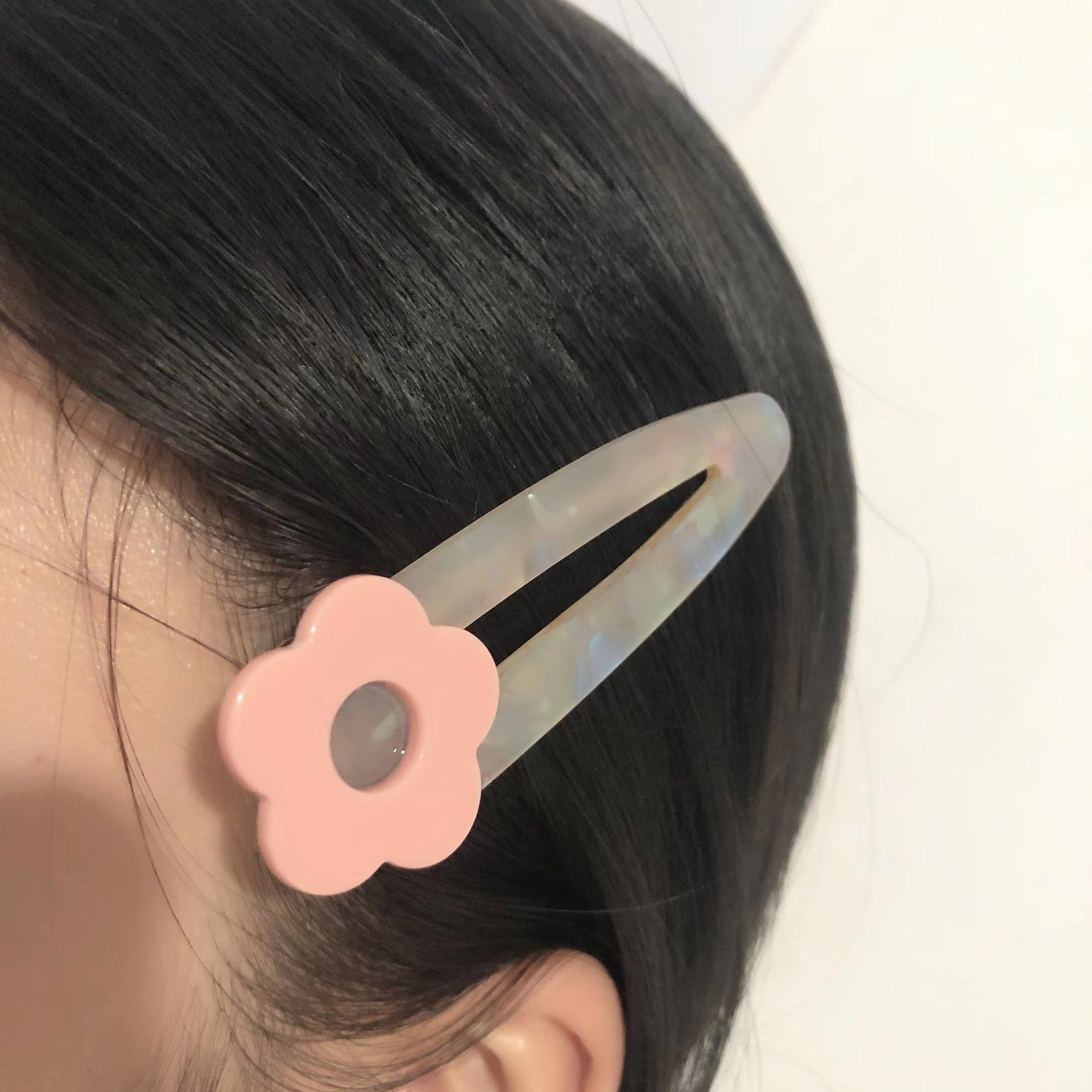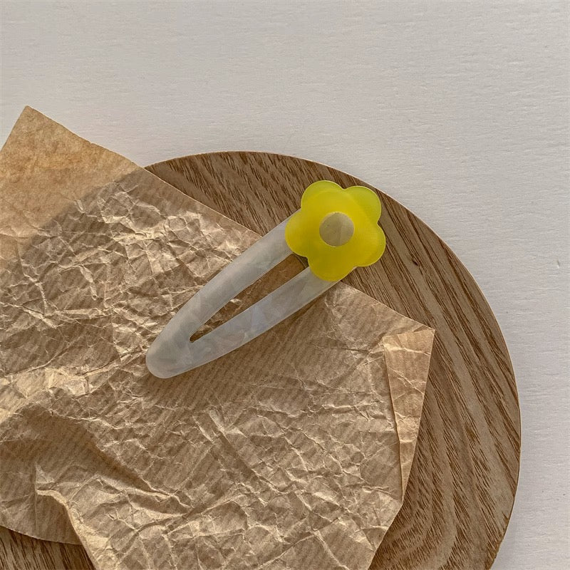 Set me dy kapëse flokësh me nuancë perle dhe lule; Ngjyrat: Lule e verdhë, lule jeshile, lule rozë, lule blu