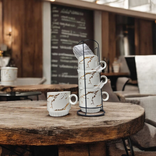 Set me filxhana kafeje dhe mbajtëse metalike, dizenjo mermeri; Materiali: Qeramik; Përmasat: 7 cm x 9 cm