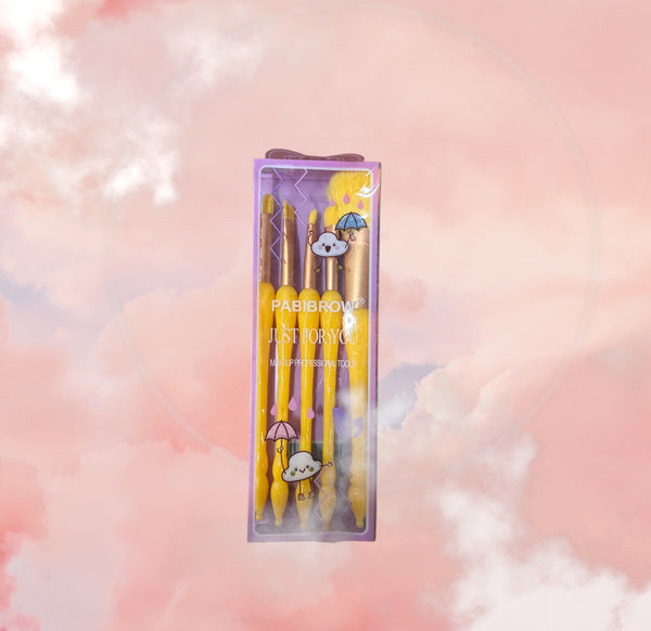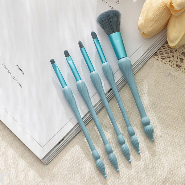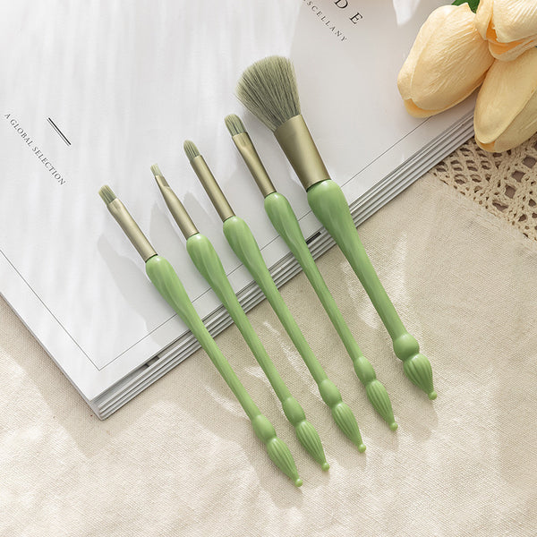 Set me 5 furça me bisht të dizenjuar; Ngjyrat: Lejla, e verdhë, jeshile, blu; Set me furça për sytë dhe blush