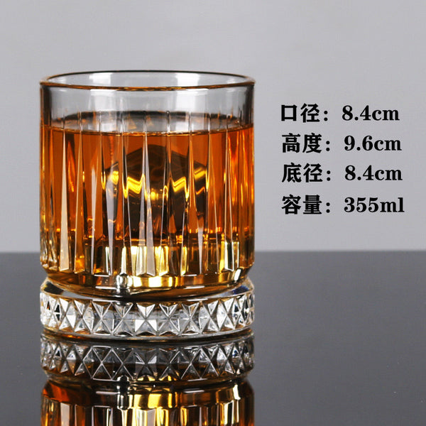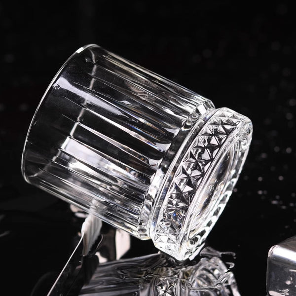 Set me 6 gota për Whiskey të vijëzuara; Materiali: Qelq; Përmasa dhe kapacitet si në foto: