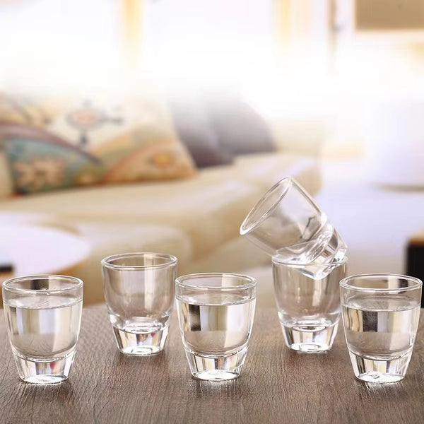 Set me gota qelqi për shotsa; Kapacitet: 30ml; Set me 6 copë; Ngjyra: Transparente ose mix ngjyrash: blu, jeshile, rozë; Përmasat si në foto: