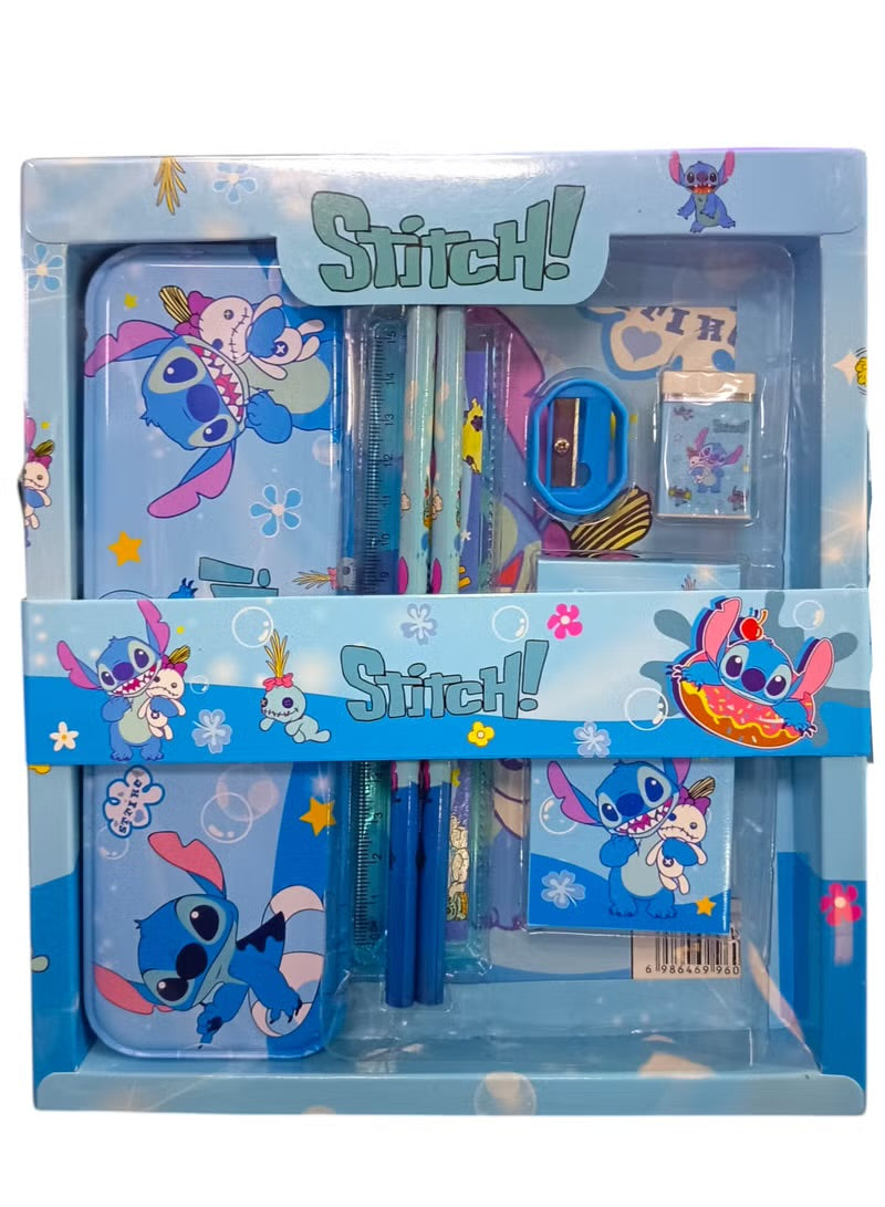 Set me sende shkolllore me Stitch; Seti përmban: kuti lapsash, lapsa, vizore, prehse lapsi, gomë, ngjyra