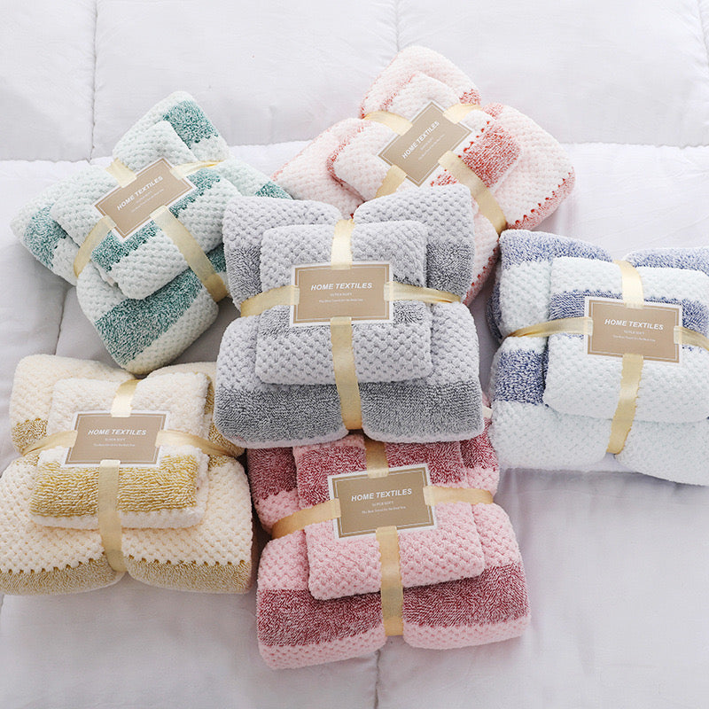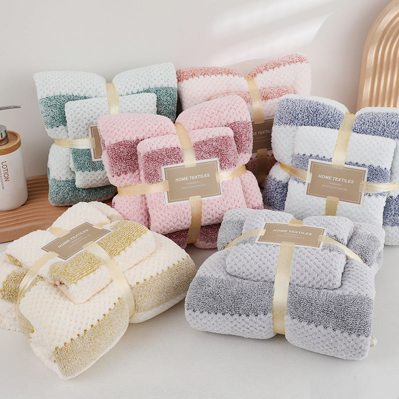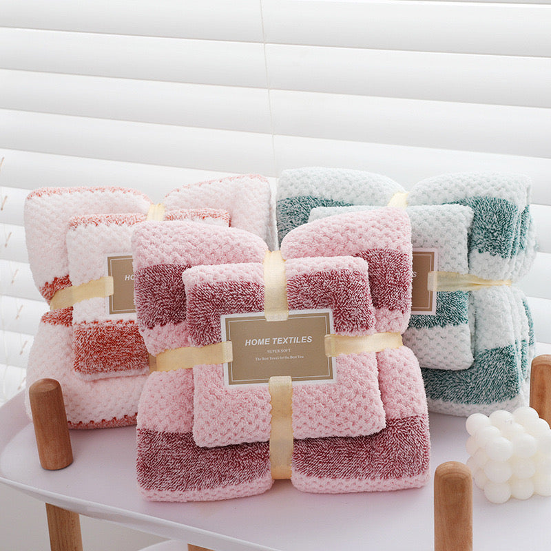 Materiali: pambuk Ngjyra: jeshile/ blu/ rozë/ bezhë/ portokalli Dimensionet: 70*140cm/ 35*70cm