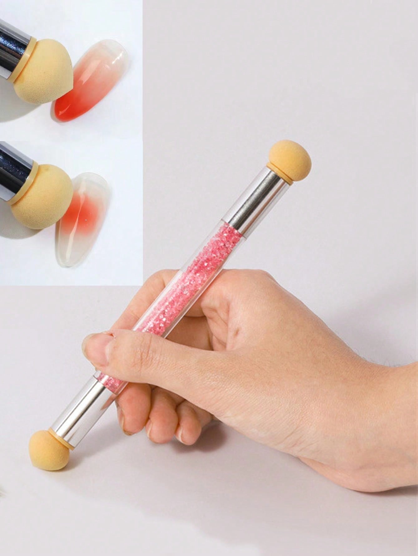Sfungjer në formë stilolapsi me gurë rozë për të bëre dizenjo të ndryshme në thonj; E lehtë për tu pastruar