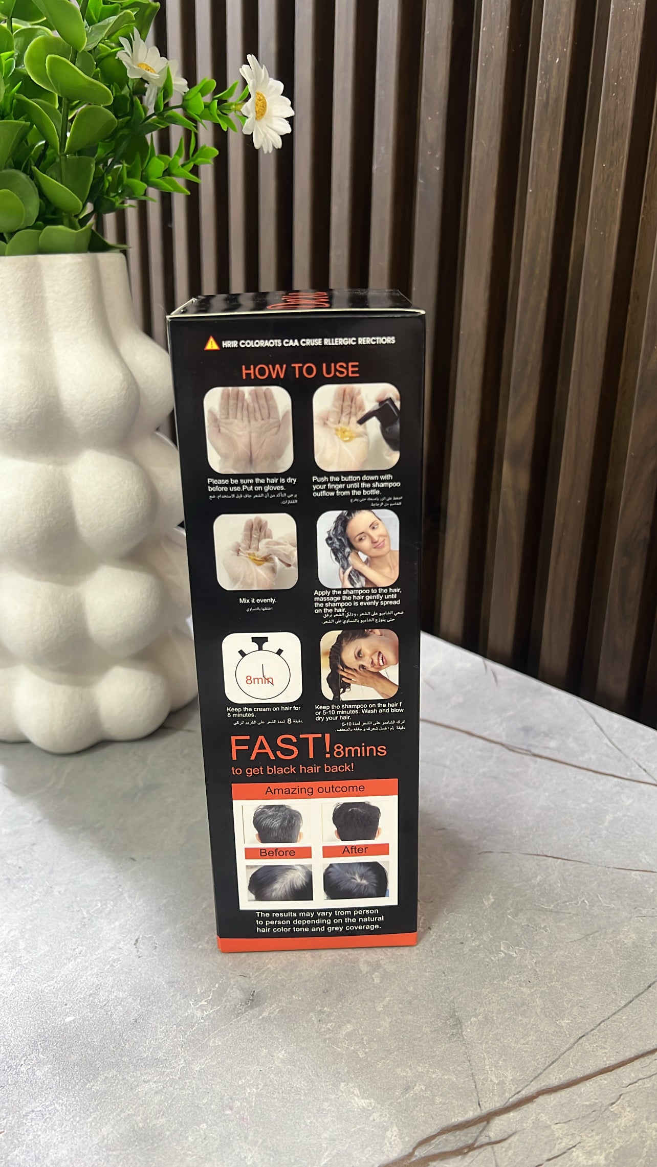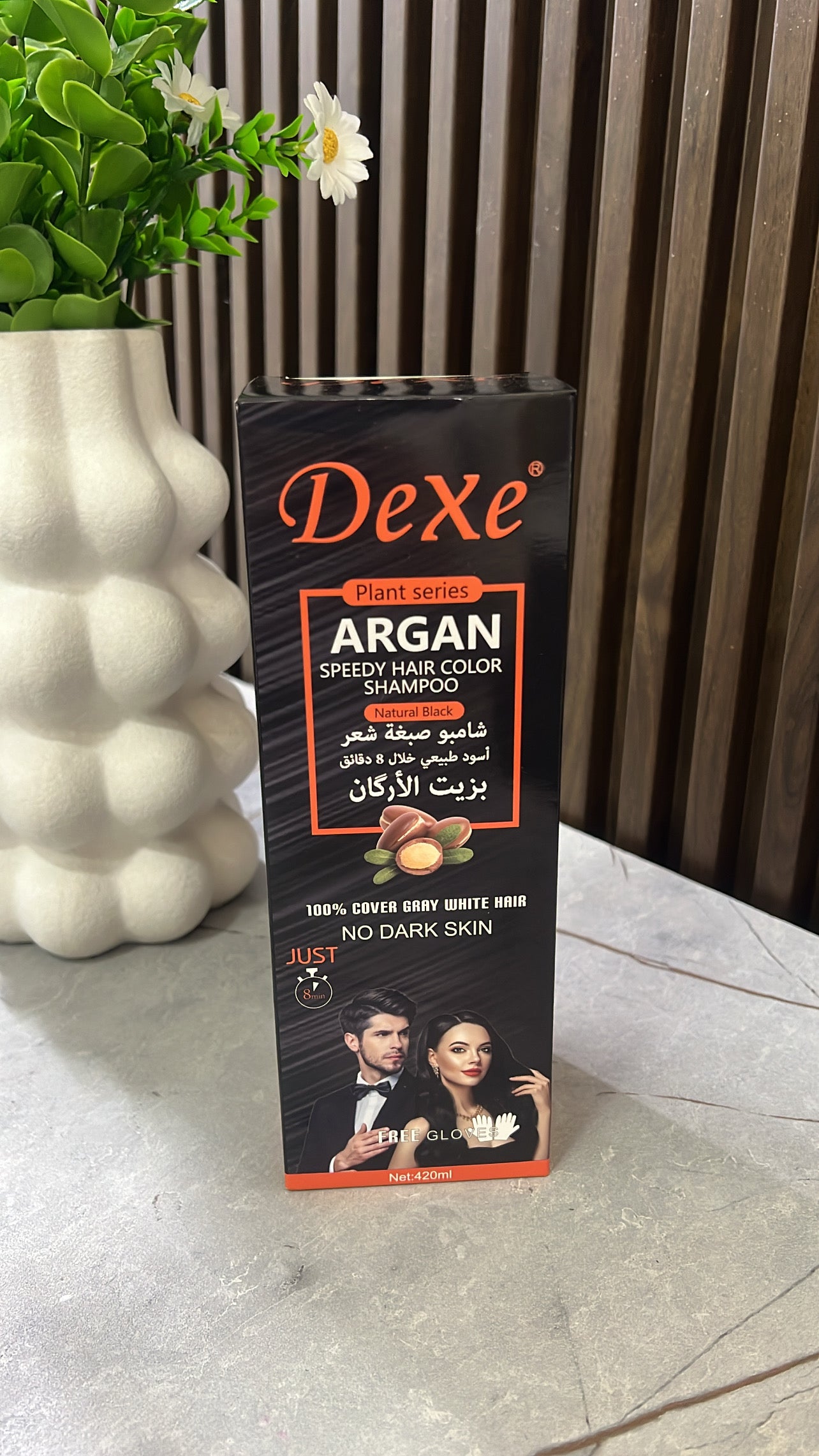 Ngjyrat: Natyral Black. Sasia: 420 ml. Vepron shpejt: Vetëm 8 min. Mbulojnë 100% thinjat. Formulë me vaj argani.