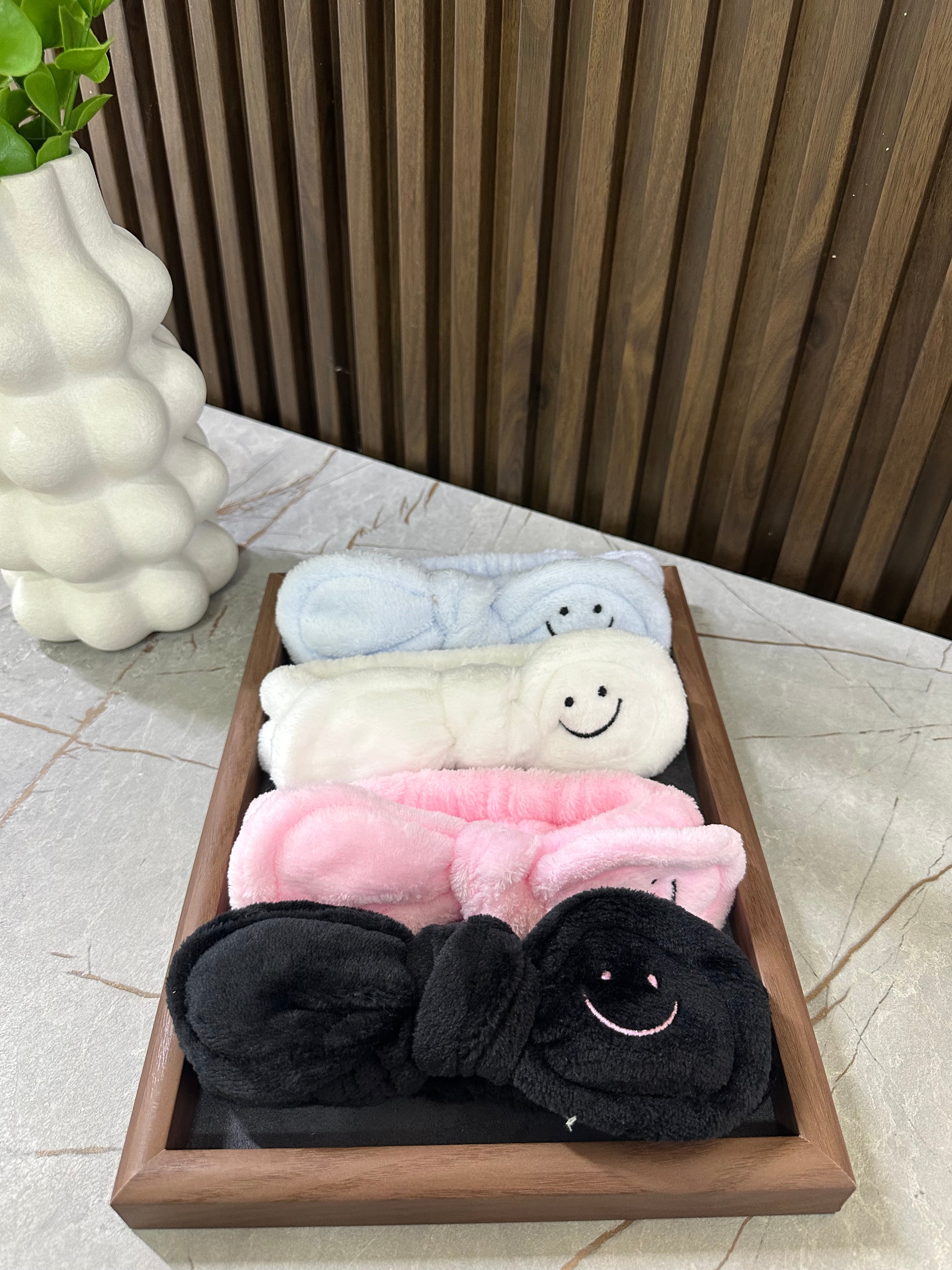 Shirit flokësh prej pellushi me motiv “smile”, shumë i butë dhe elastik. Ideal për makeup, pastrim fytyre apo përdorim të përditshëm. Ngjyrat: E zezë, e rozë, e bardhë, e bojëqielli....