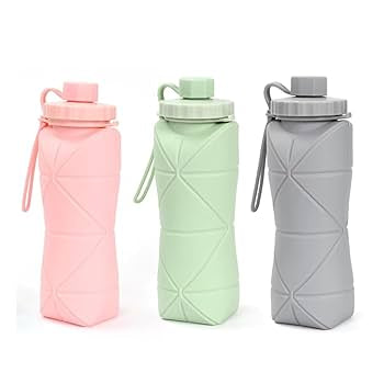 Shishe silikoni e palosshme, ideale për udhëtime; Ngjyra: Gri, rozë, jeshile