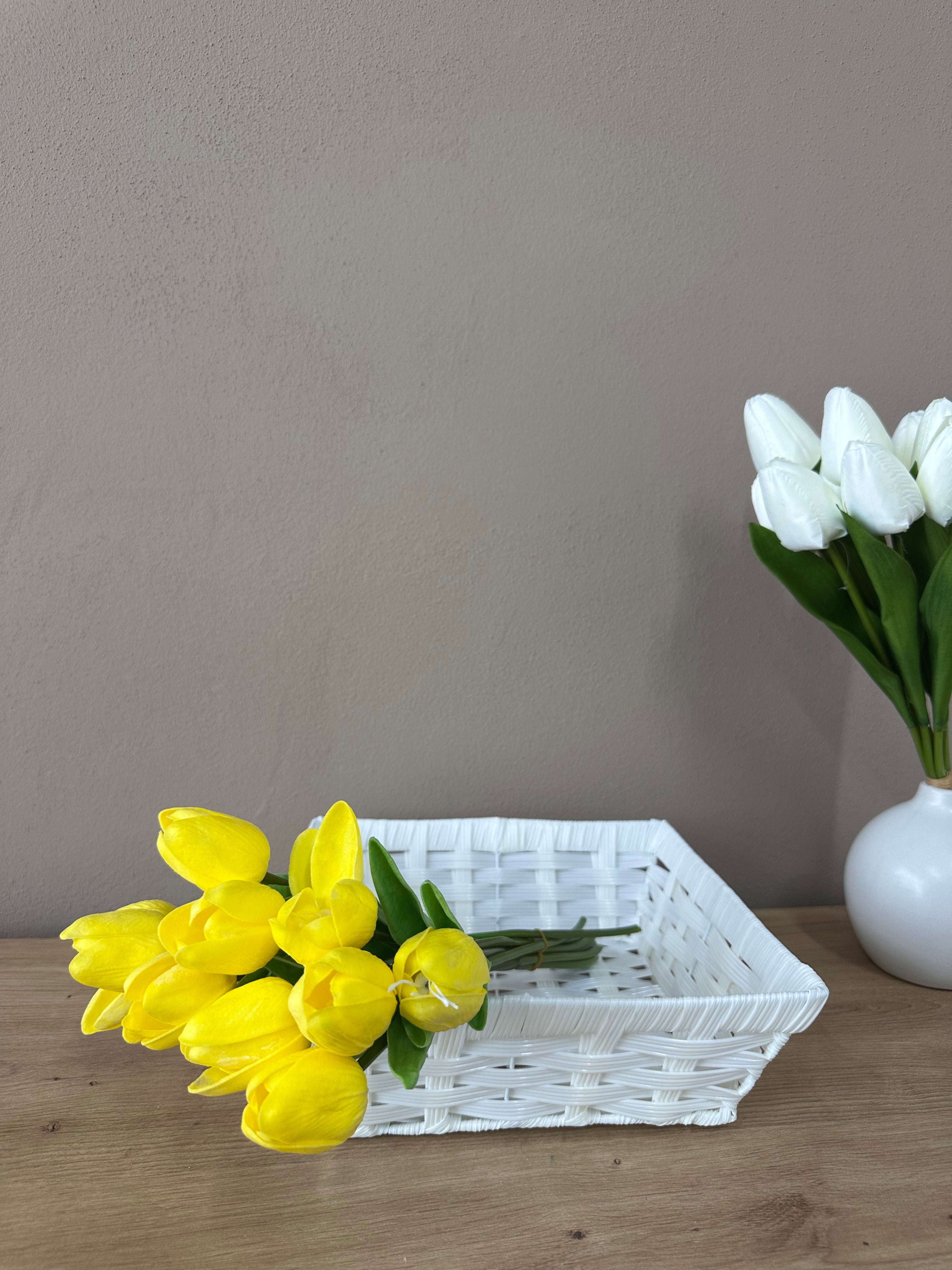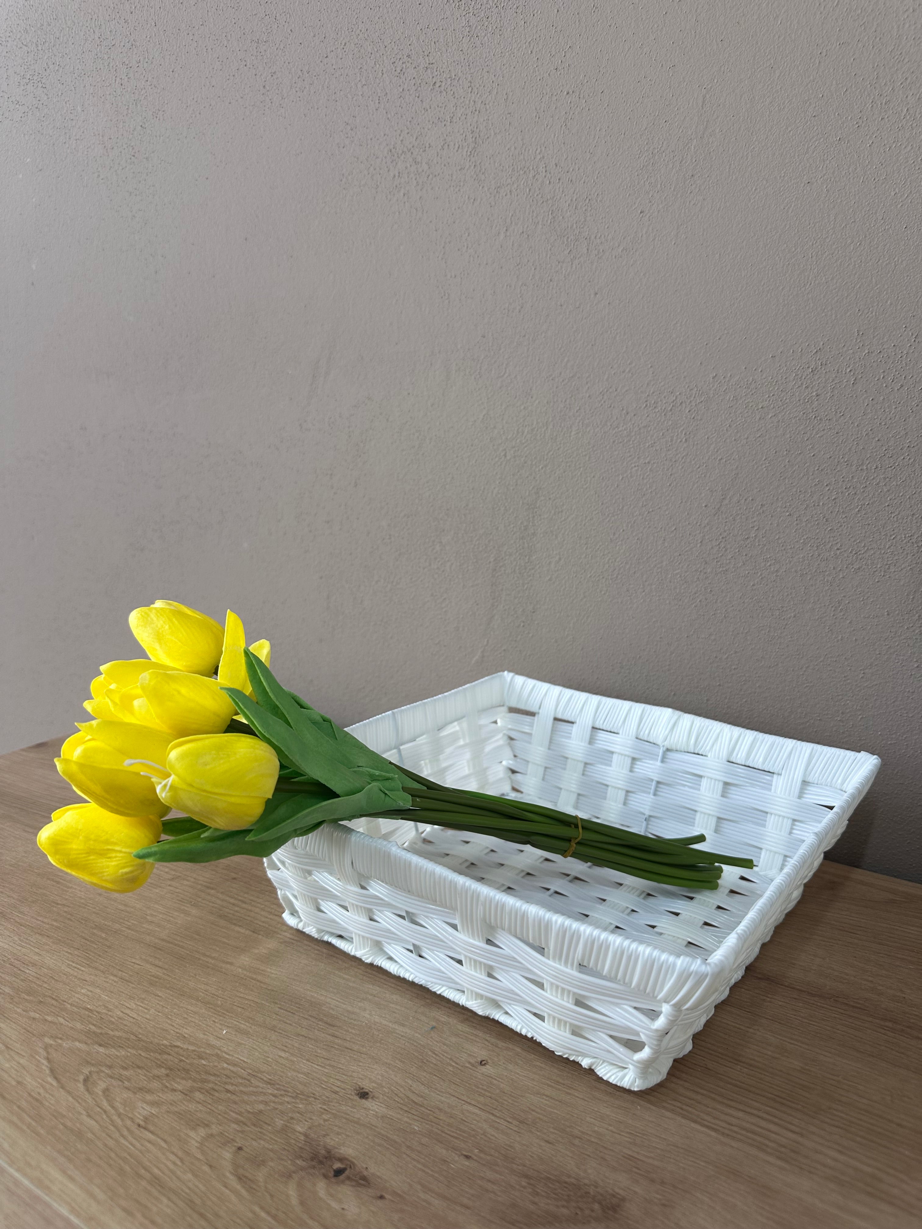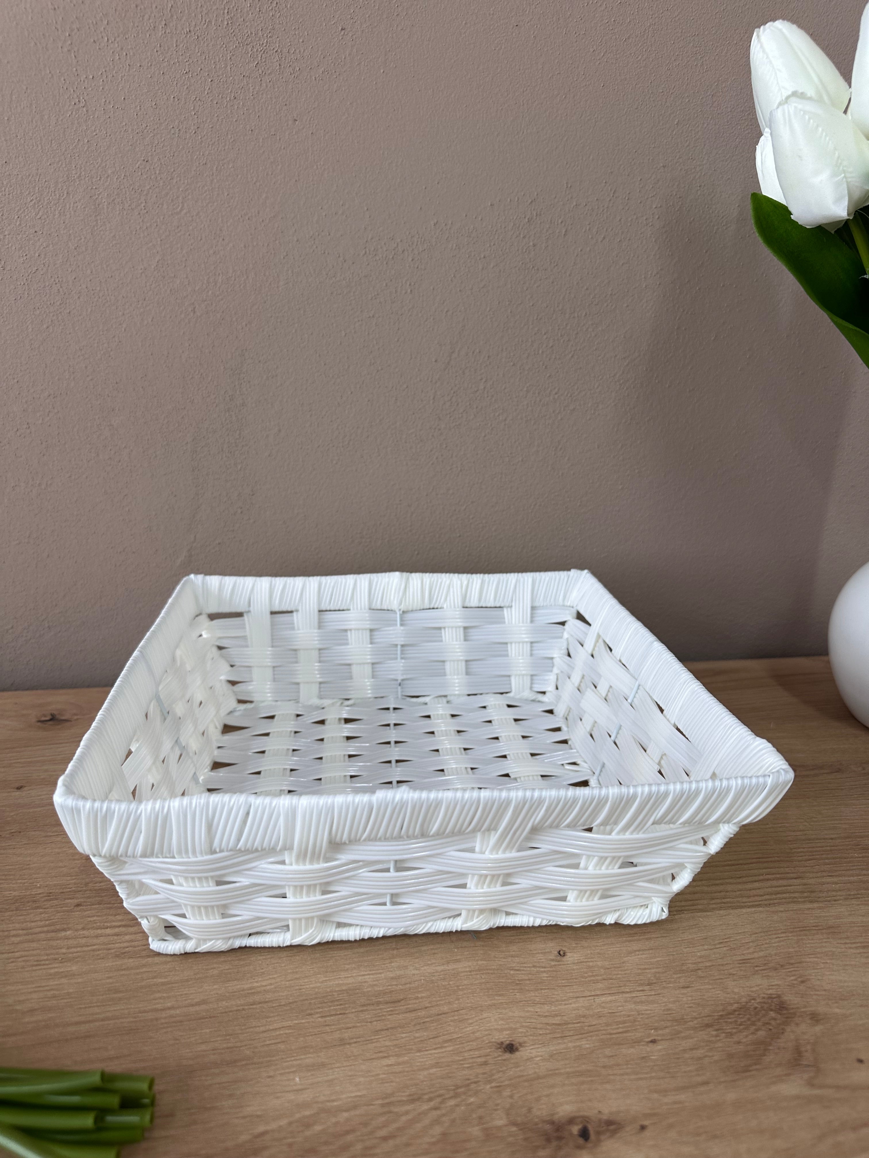 Shportë imitim kashte ngjyrë e bardhë; Forma Katrore; Përmasa: 25 cm x 25 cm