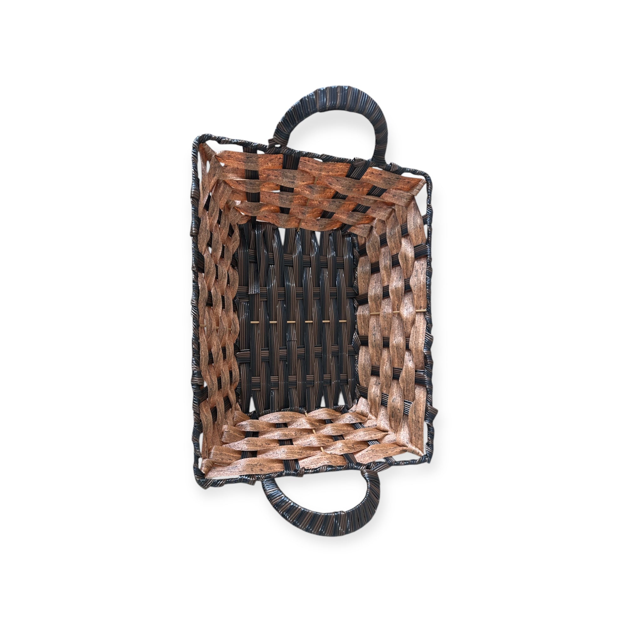 Shportë kashte me doreza kafe në formë drejtkëndore