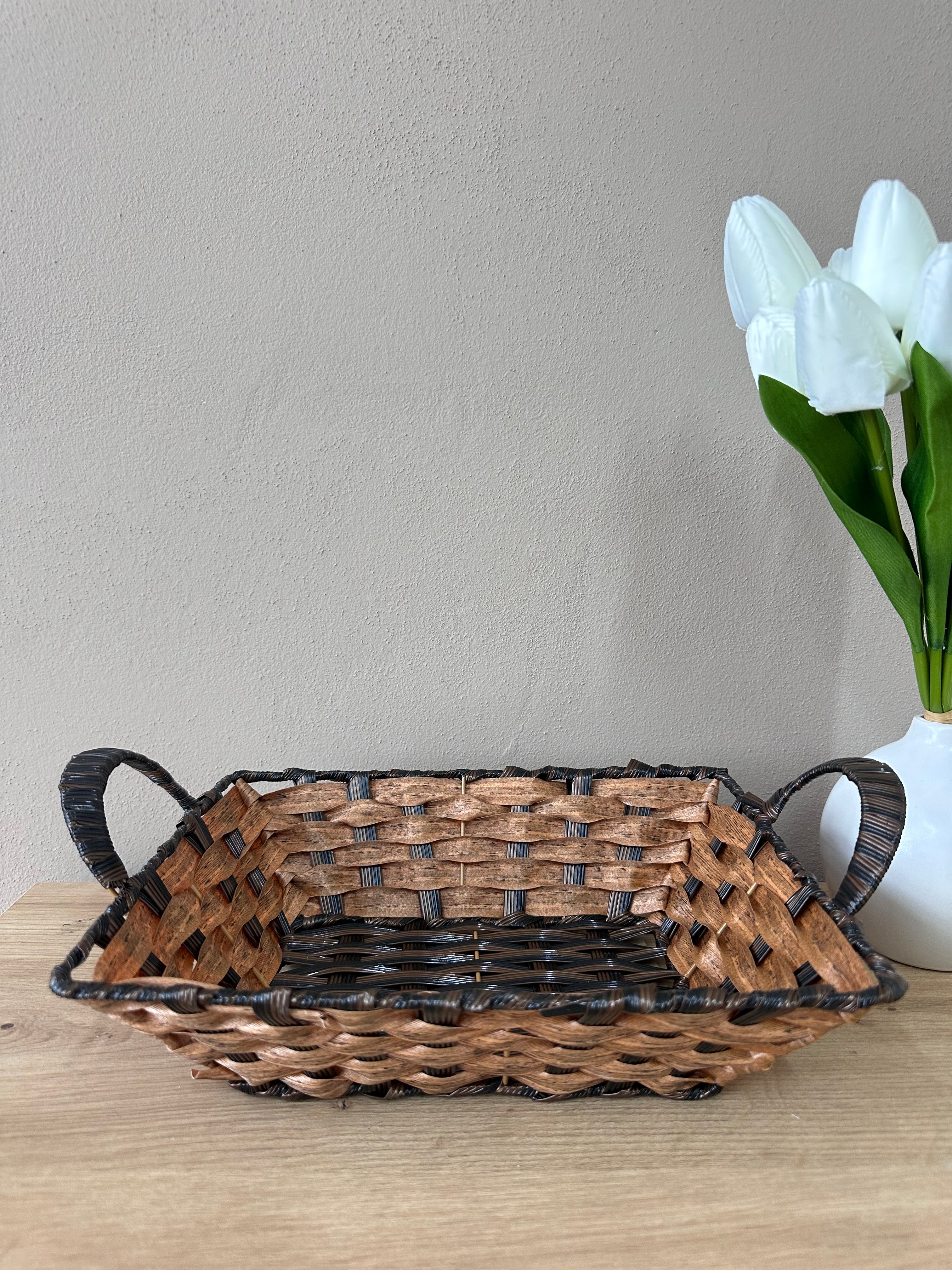 Shportë kashte me doreza kafe në formë drejtkëndore; Përmasa: 20 x 30 cm