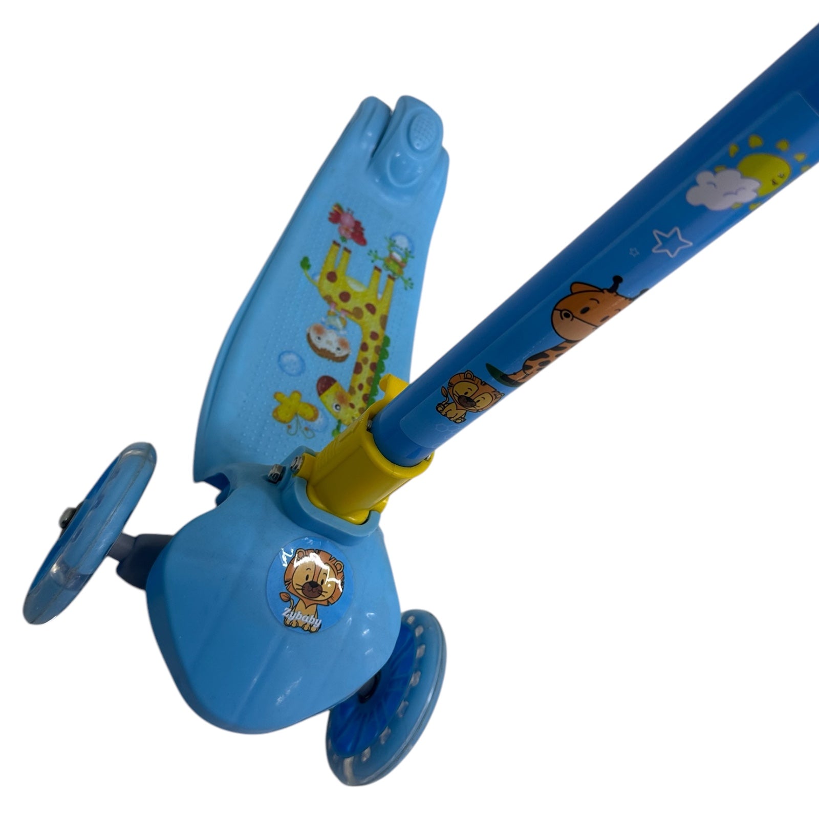 Skuter me figura kafshësh; Ngjyrë blu; Materiali: Metal dhe Plastik; Mosha: + 3 vjeç; Gjatësi duke filluar nga 55 cm