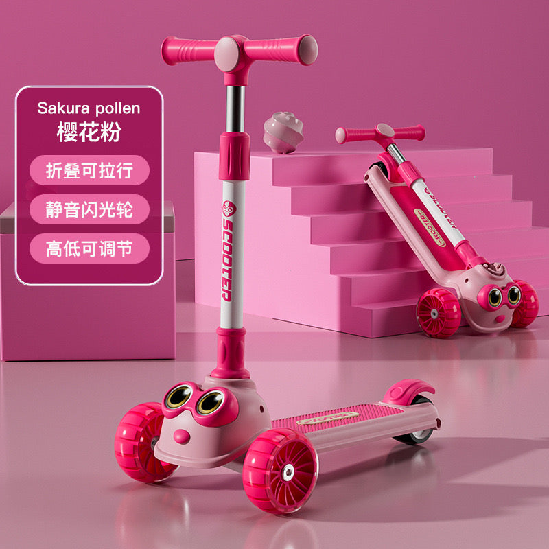 Skuter me emoji; Ngjyrë: rozë; E përshtatshme për mosha të ndryshme fëmijësh nga 3-9 vjeç; Metal; Përmasat si në foto: