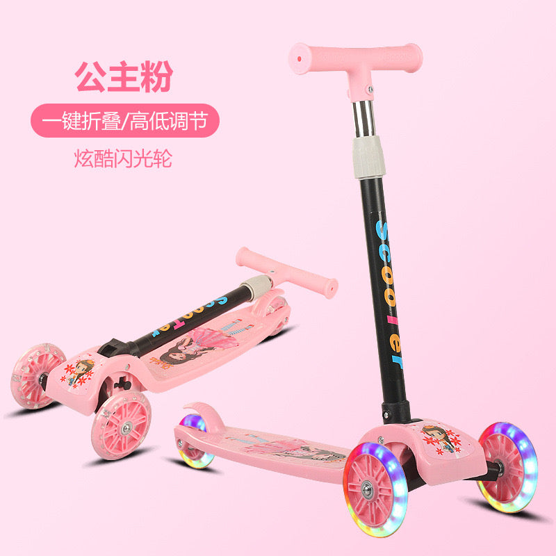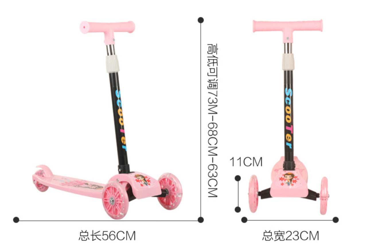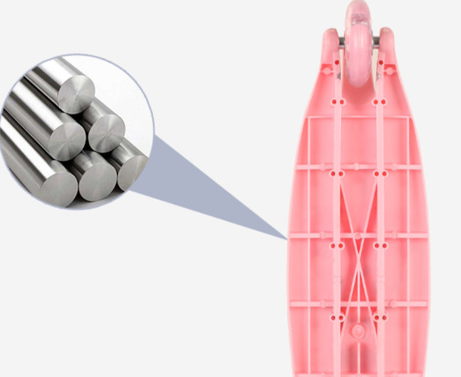 Skuter rozë me figura princeshash; Materiali: Plastik dhe Metal; Mosha: + 3 vjeç; Përmasat si në foto: