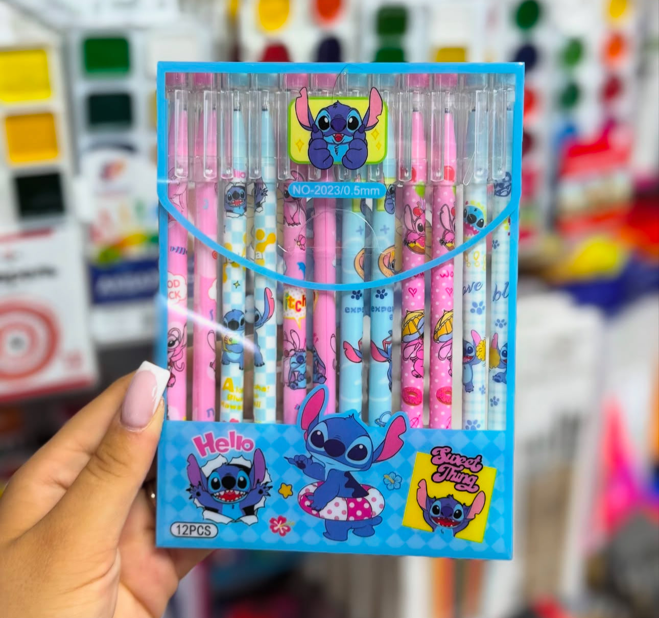 Stilolapsa me majë të hollë me Stitch; 12 copë; 6 modele të ndryshme në ngjyrat rozë e blu