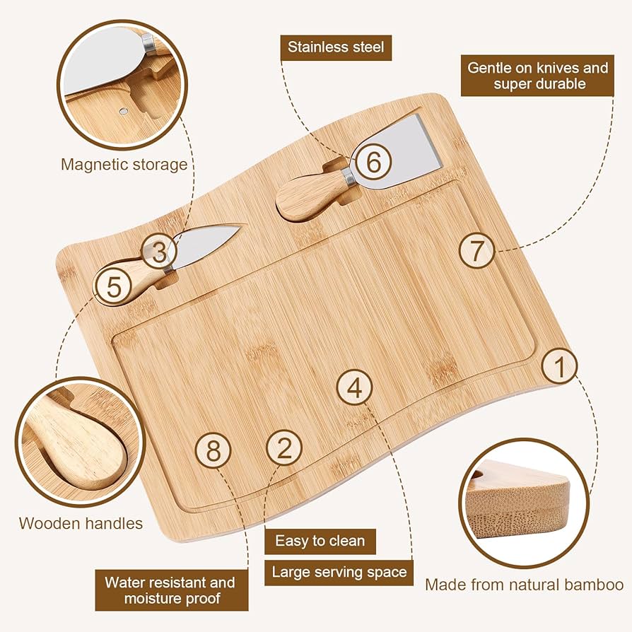 Tabaka druri për servirje antipastash me dy thika për prerjen e djathit; Me ndarje të integruar për thika, kanal për lëngje (juice groove) për pastërti, sipërfaqe jo-poroze për higjienë të plotë...