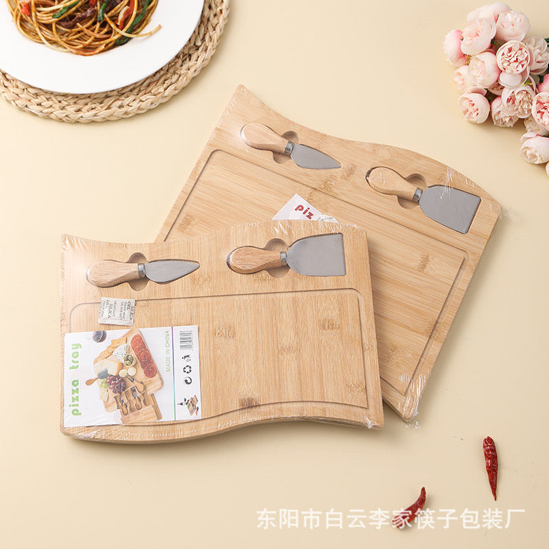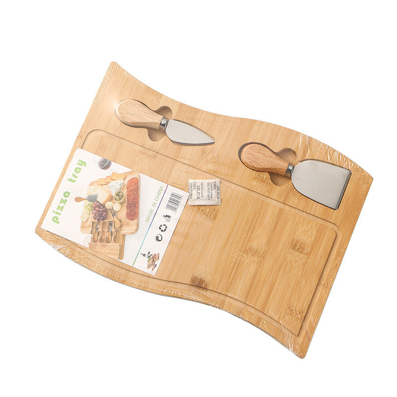 Tabaka druri për servirje antipastash me dy thika për prerjen e djathit