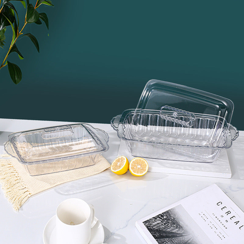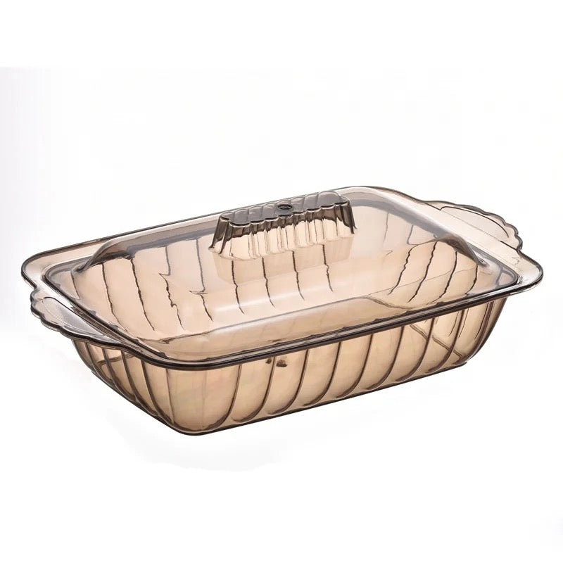 Tas plastik me kapak dhe mbajtëse; Përmasa: 32.3*21.2*12.5 cm; Ngjyra: Gold, transparente, lejla