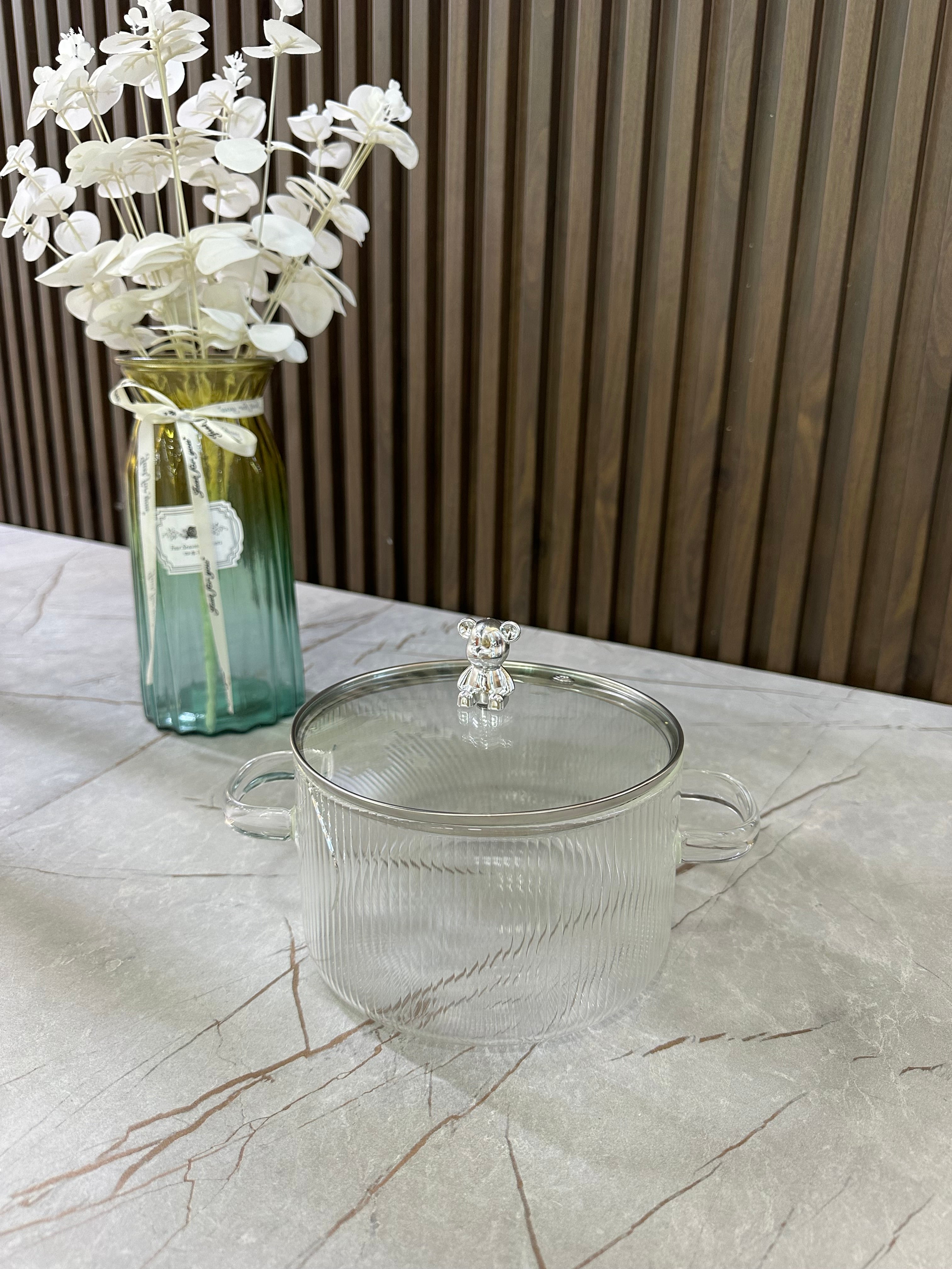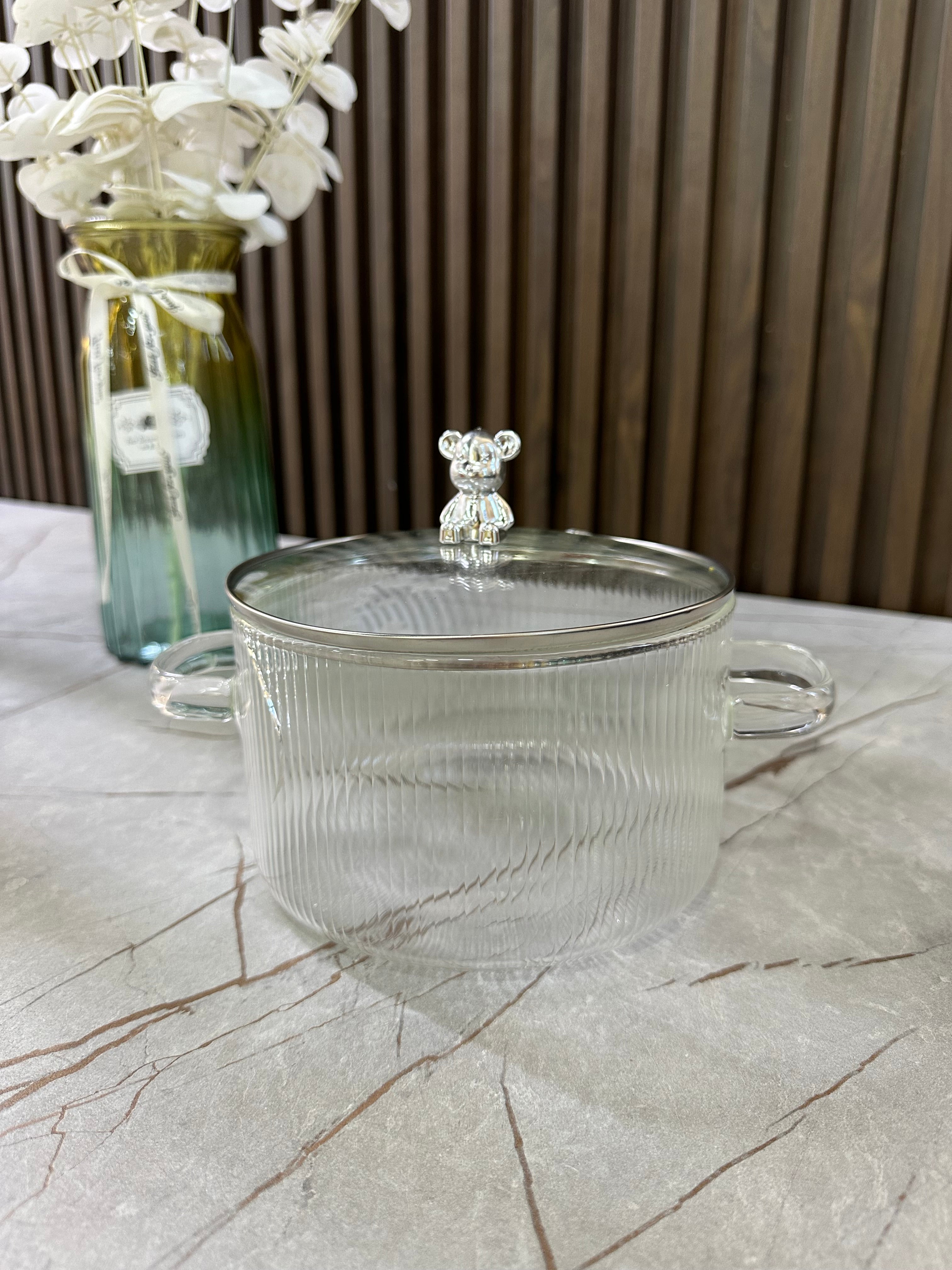 Tenxhere qelqi me kapak transparent dhe dorezë dekorative me “Arush”