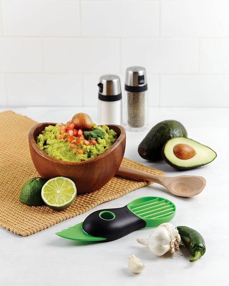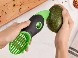 Thikë për avokado; me 3 përdorime; qëron, heq bërthamën, pret në copa