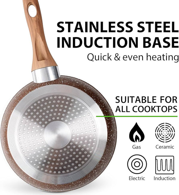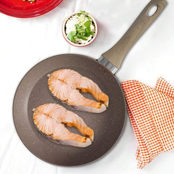 Tigan i thellë me bisht druri ngjyrë kafe; Përmasa: 24 cm x 6 cm; Nuk ngjit; Inoks; I përshtatshëm për çdo mënyrë gatimi; Edhe në ngjyrën e zezë; Përmasa: 26...