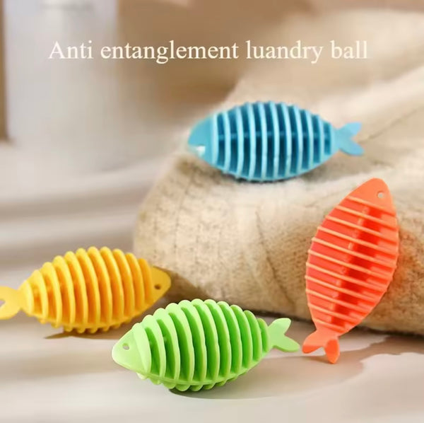 Top lavanderie kundër ngatërrimit të rrobave, formë peshku, set 4 copë
