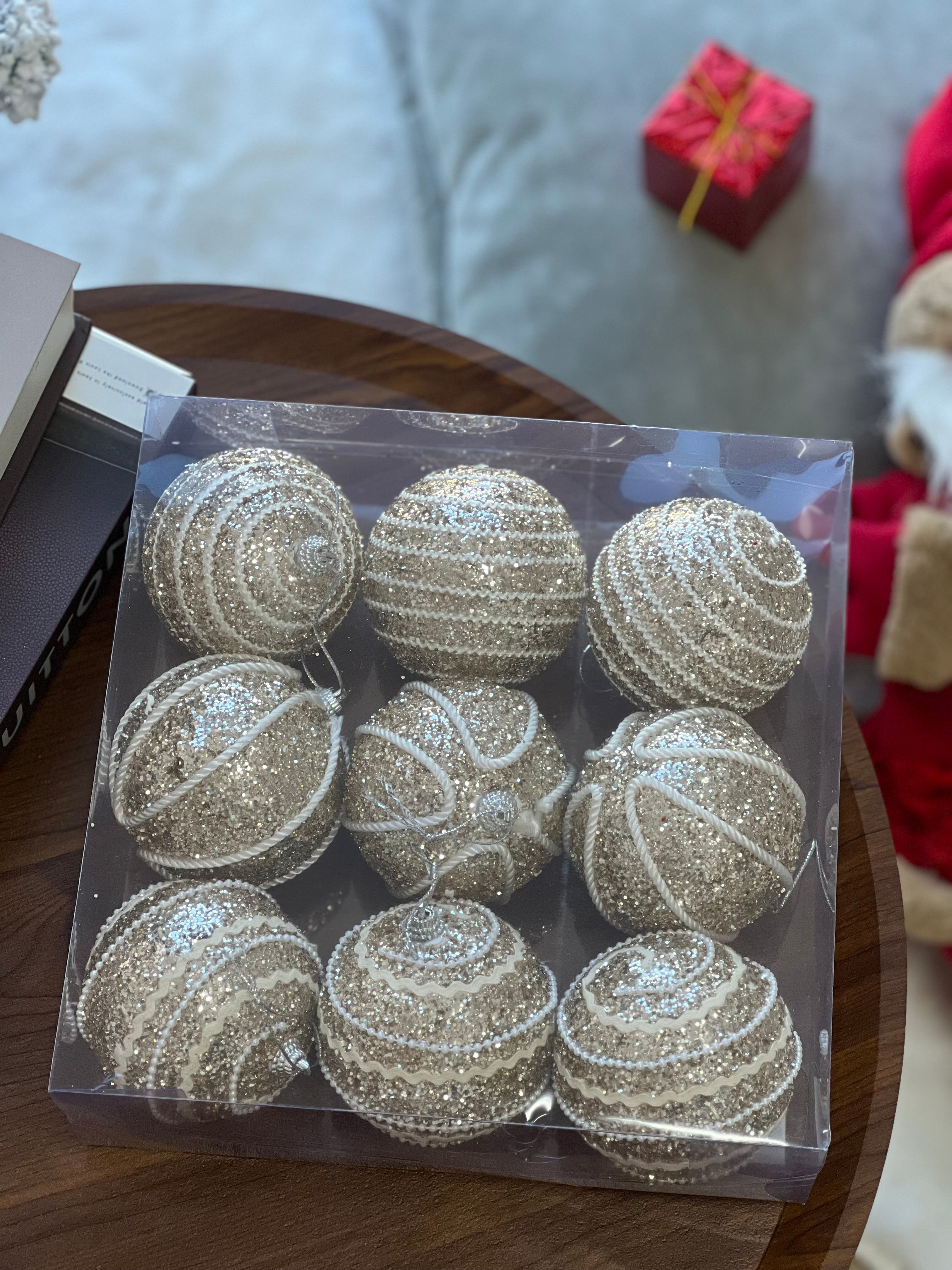 Ngjyra: silver, gold, e kuqe Diametri: 8cm Paketimi: 9 cope