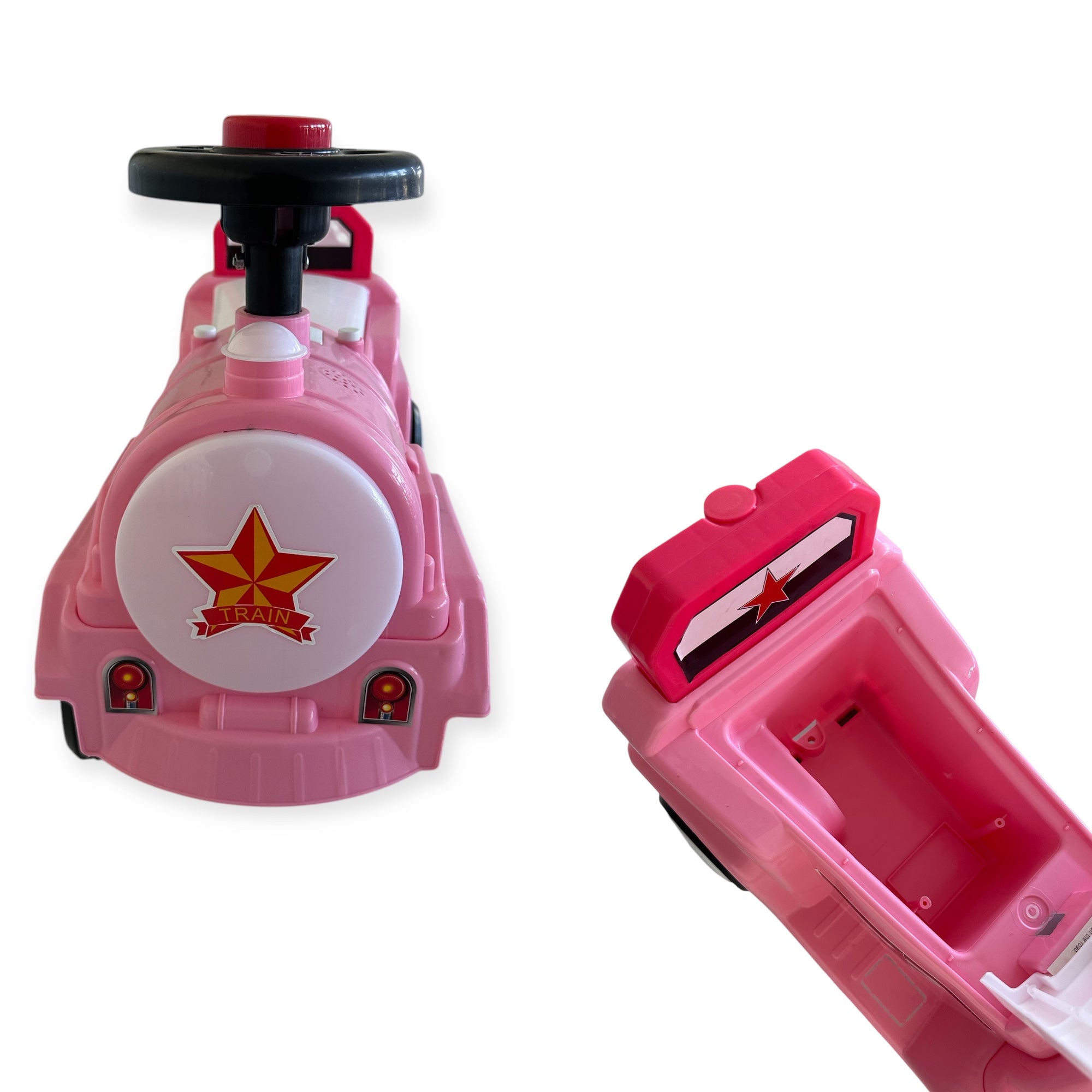 Tren lodër për vajza; Me burie; Me hapësirë për të mbajtur lodrat; me drita; Me muzikë; Përmasat: 73 cm x 46 cm; 4.5 kg