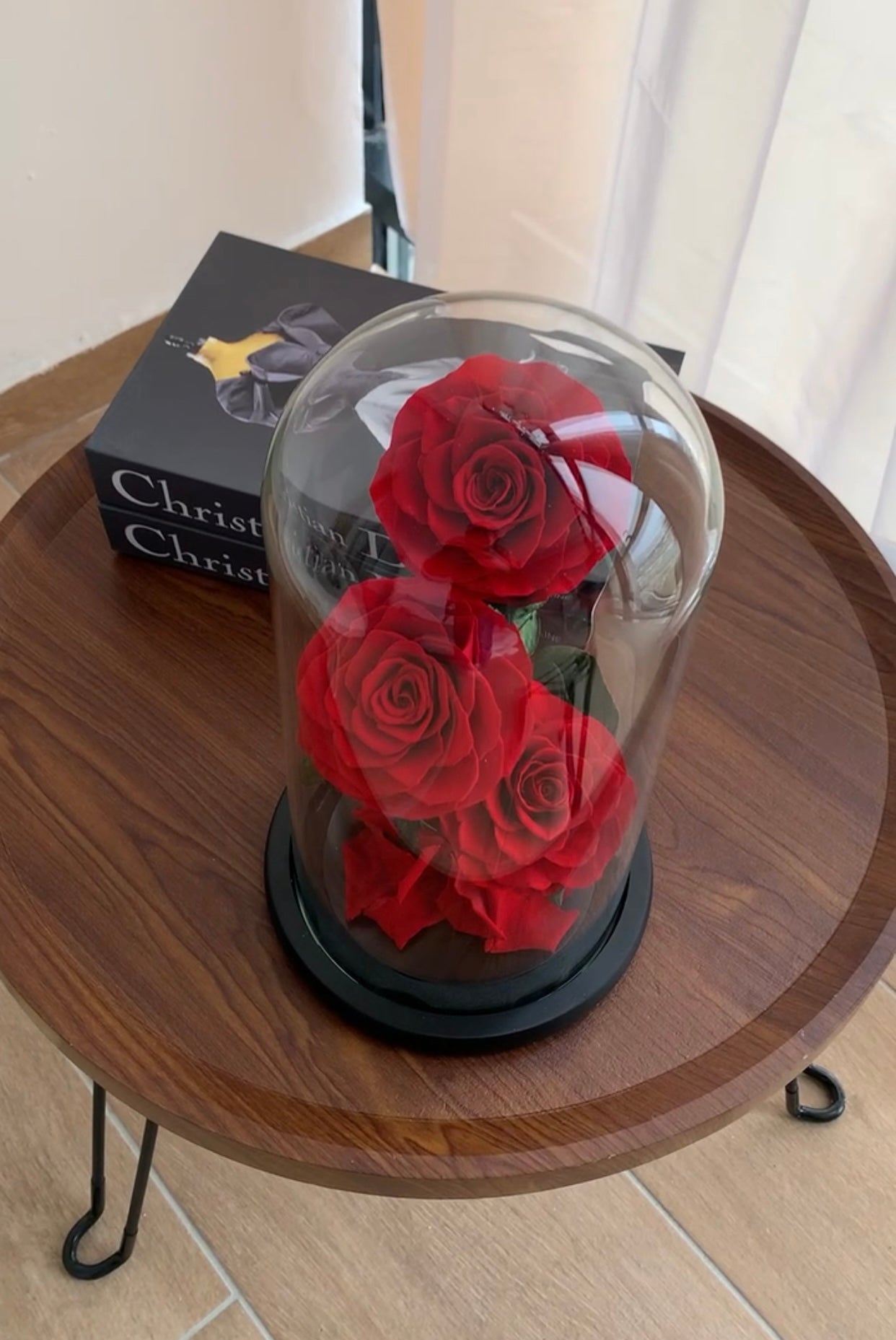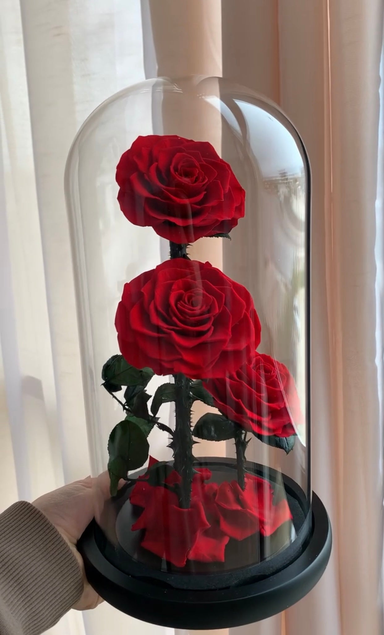 Trëndafila të kuq me kupolë xhami, 3 copë