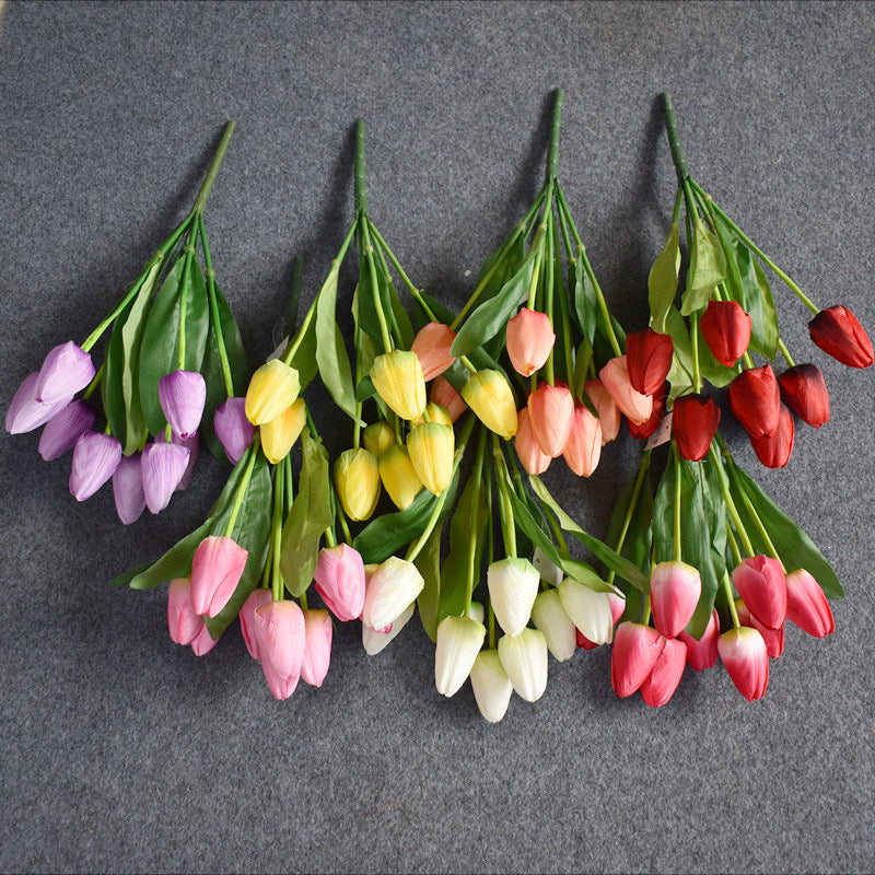 Tufë me tulipana me 9 koka e gjethe shoqëruese me gjatësi 41 cm